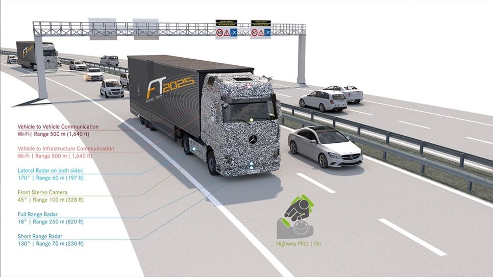 Hace ya un tiempo augurábamos que los camiones tenían muchos para ser los primeros vehículos sin conductor y parece que los fabricantes también opinan lo mismo. Más allá del proyecto Sartre de Volvo (en el que es un camión el que guía a un convoy de coches), Mercedes ya ensaya, bajo el proyecto Future Truck 2025, tecnología de conducción autónoma en los camiones.
