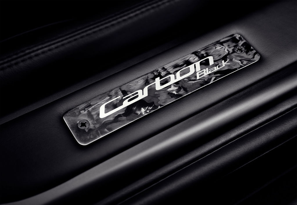 En el exterior podemos ver más revestimientos de fibra de carbono. en las branquias de las aletas delanteras, las cubiertas de los retrovisores y los tiradores de las puertas, con un marco de las ventanillas en negro. tanto en el exterior. La fibra de carbono también aparece en algunos detalles del interior, en el que sobresalen los tapizados de piel con costuras rojas.
