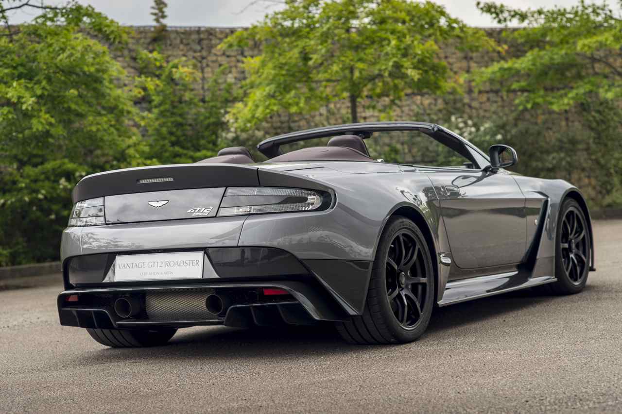 Sobre uno de estos pocos ejemplares, con el motor V12 de 6.0 litros atmosférico, que rinde una potencia de 600 CV y 625 Nm se ha realizado el espectacular e irrepetible Aston Martin Vantage GT12 Roadster. Cuenta con todas las mejoras de la versión coupé, incluido el kit aerodinámico fabricado en carbono, unas llantas forjadas de 19 pulgadas sobre las que se equipan neumáticos Michelin Pilot Super Sport Cup o un poderoso sistema de frenos con discos carbocerámicos creado por el especialista Brembo.