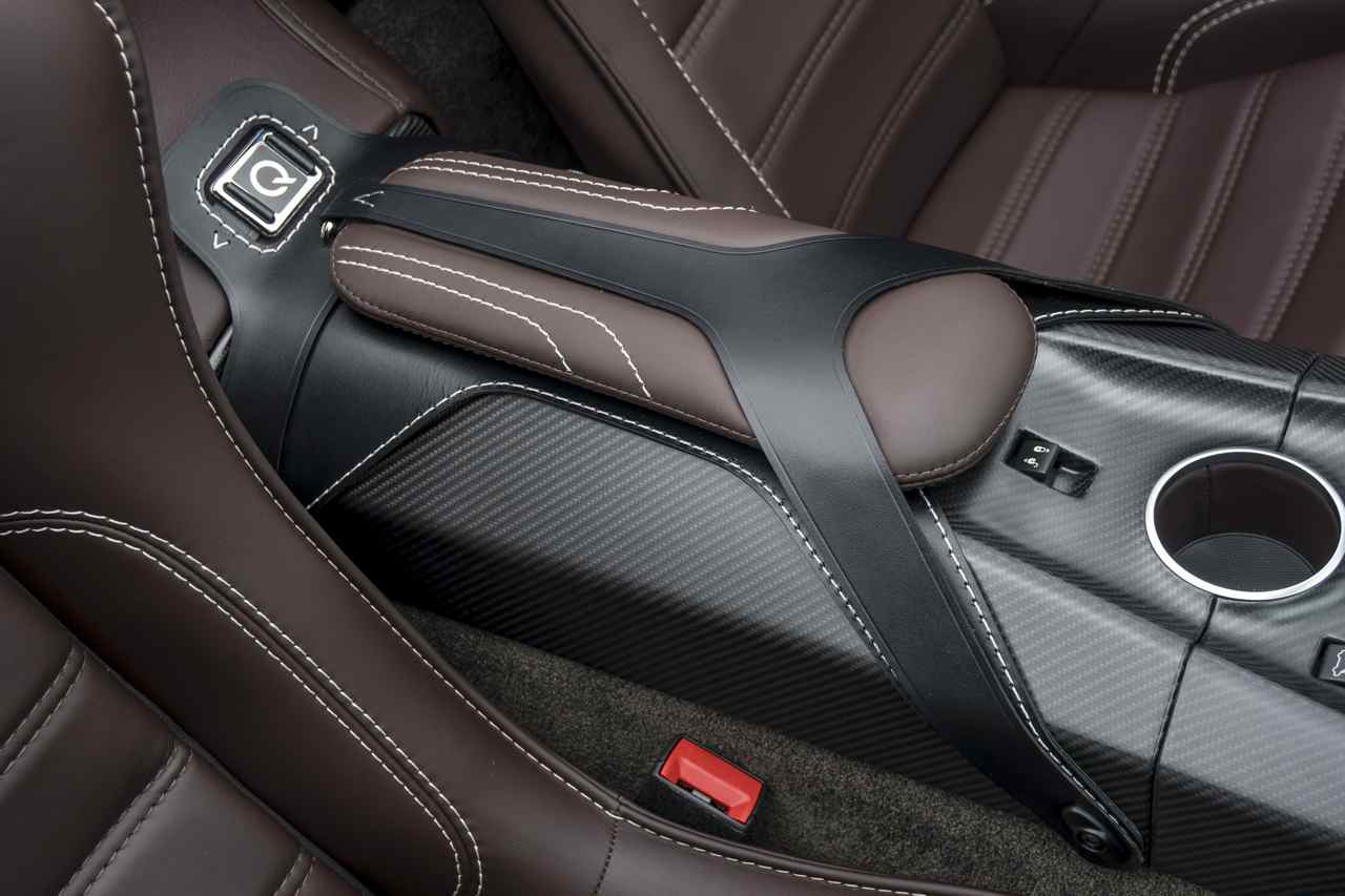 El acaudalado cliente que ha encargado este Aston Martin Vantage GT12 Roadster lo ha personalizado al gusto, desde el color exterior hasta el tono del cuero de sus asientos, combinado además con una buenas dosis de carbono que mantiene el peso a raya, además de dar un aspecto muy deportivo en un habitáculo que, como todos los de la gama, destaca por su elegancia.