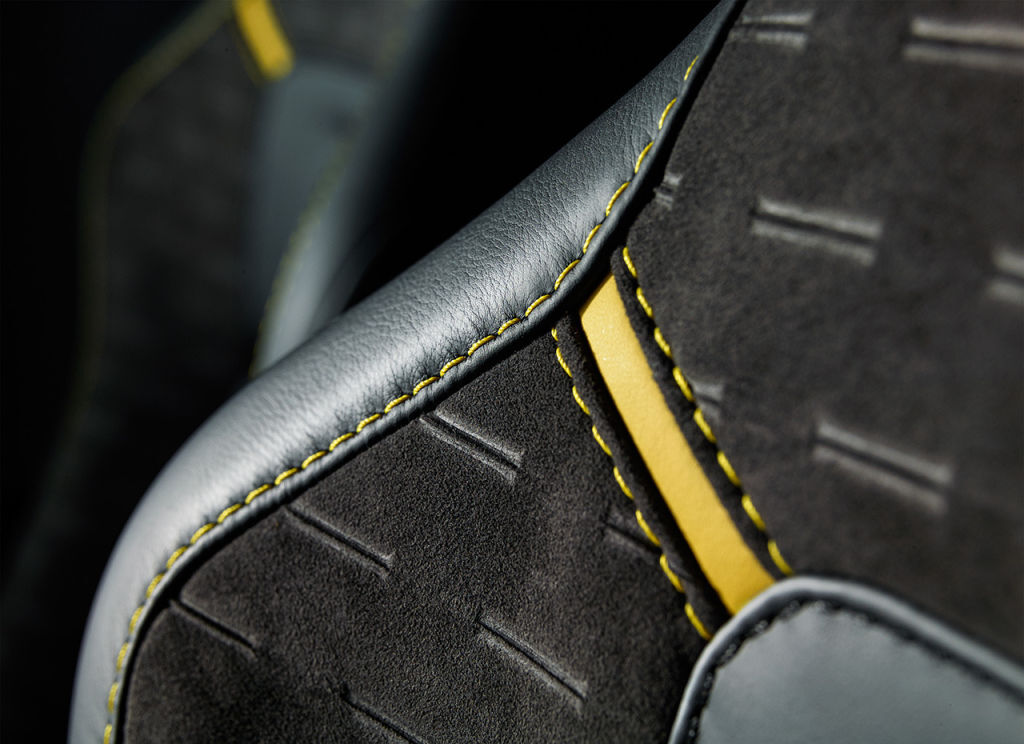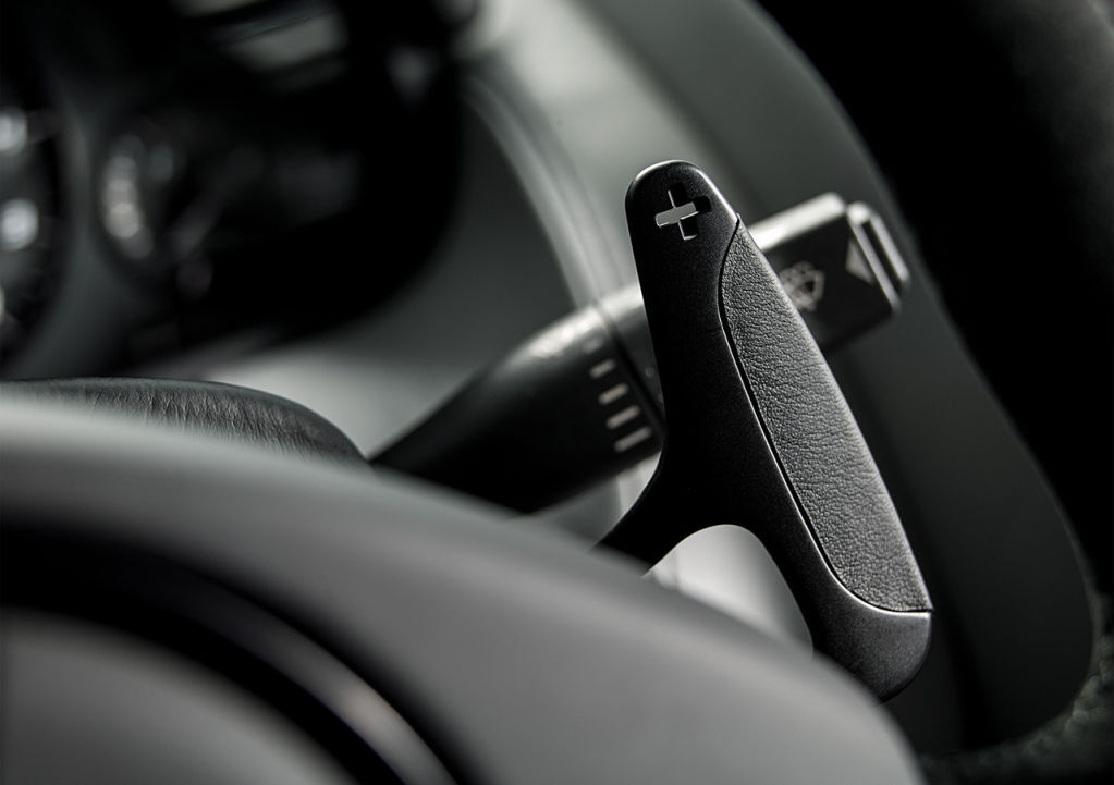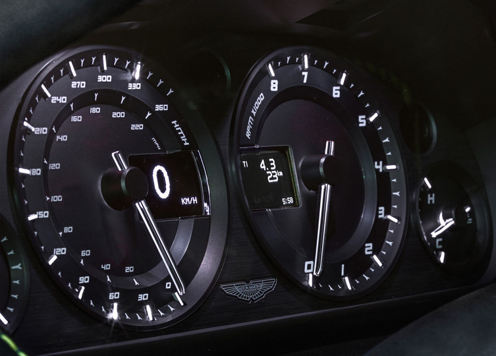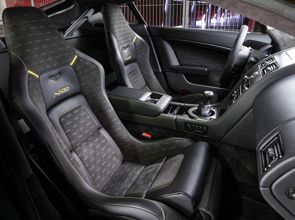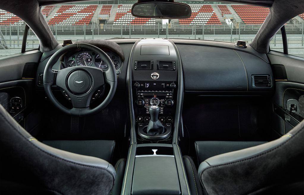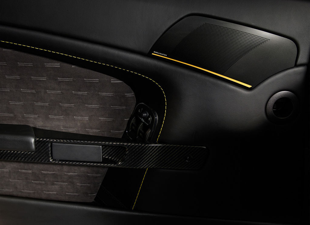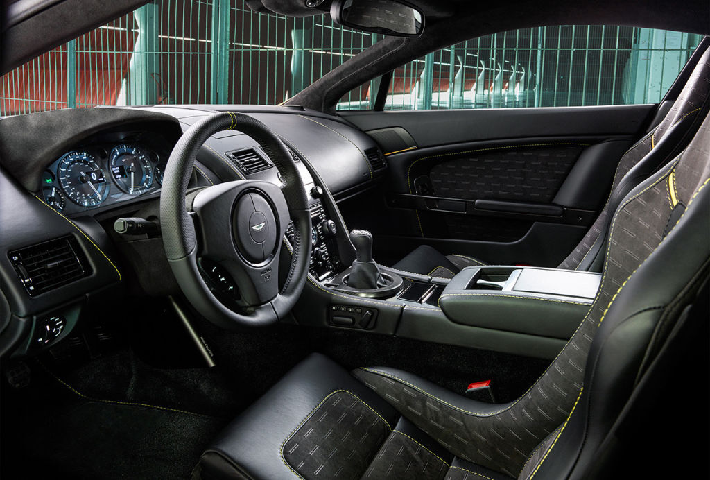 Además de su kit aerodinámico y detalles diferenciadores, este Aston Matin no se olvida del lujo, y los asientos y el salpicadero vienen tapizados en una sugerente combinación de cuero y piel vuelta. También puede llevar extras como un equipo de sonido Bang & Olufsen de 1.000 W.