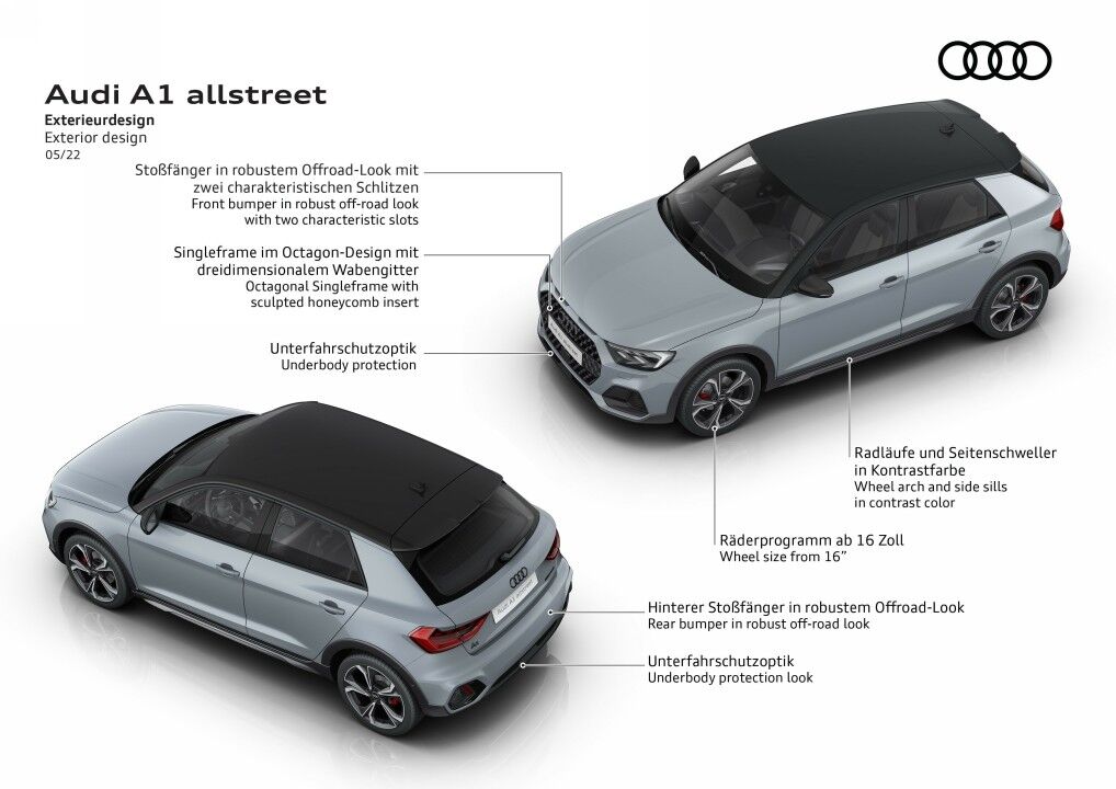 Fue en verano de 2019 cuando Audi quiso dotar al A1 Sportback de una doble personalidad convirtiéndolo en un pseudo-crossover urbano. Con la mayor altura libra al suelo y molduras de plástico negro bordeando la sección inferior de la carrocería, recibió en sobrenombre de Citycarver. Ahora, de cara al año-modelo 2023, se ha rebautizado como Audi A1 allstreet, mientras que otros modelos reciben algunas actualizaciones menores.