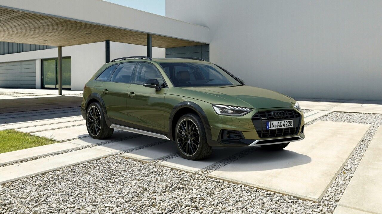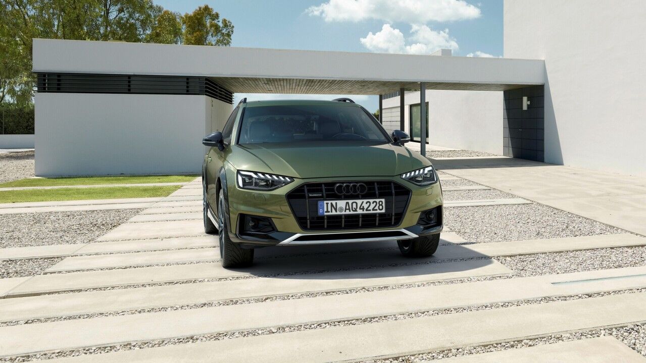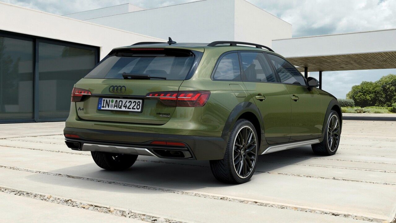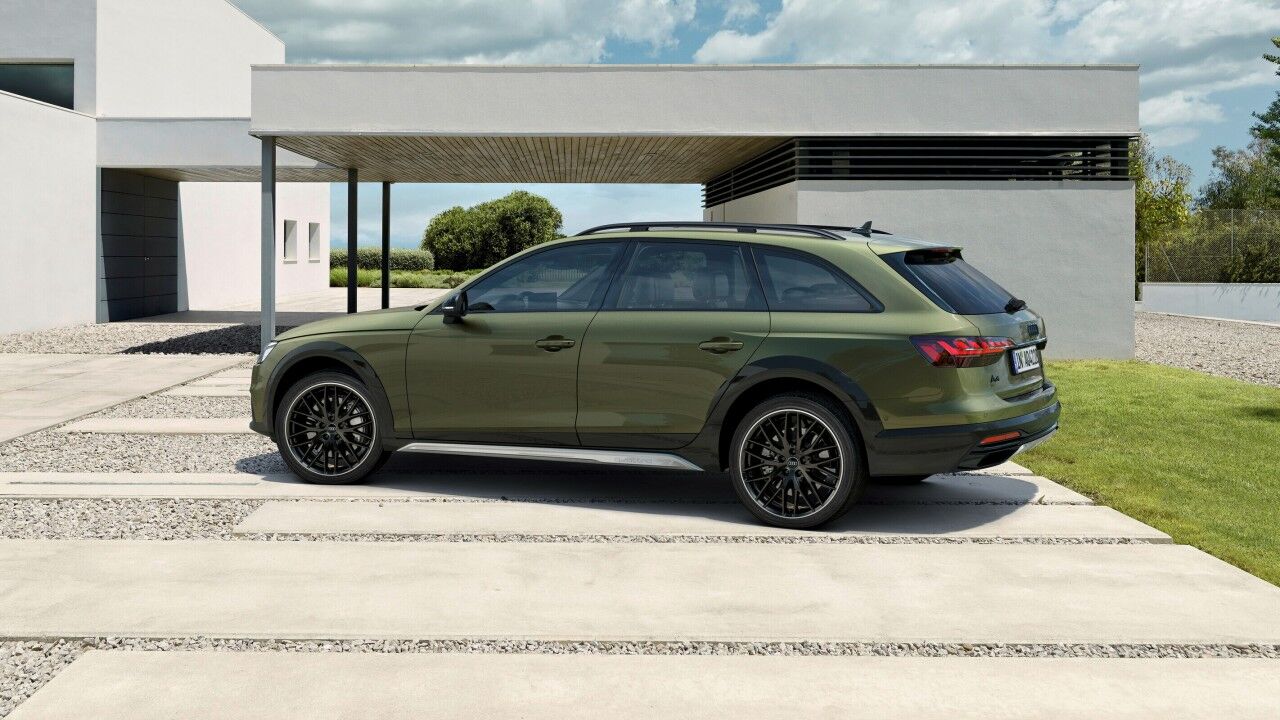 El carácter expresivo del Audi A4 Allroad quattro Black Optics Pro se subraya aún más con el logo de los cuatro aros en negro brillantes en la parte delantera y trasera, así como con la inscripción “A4 allroad”. Además, ahora los rieles del techo también se pueden pedir en este tono oscurecido, mientras que los parachoques se pueden adquirir en un color Manhattan Grey Metallic en lugar del Matte Structure Grey estándar. Por último, los tonos exteriores Chronos Grey y Distinct Green (en imagen) se han añadido a la paleta de colores.