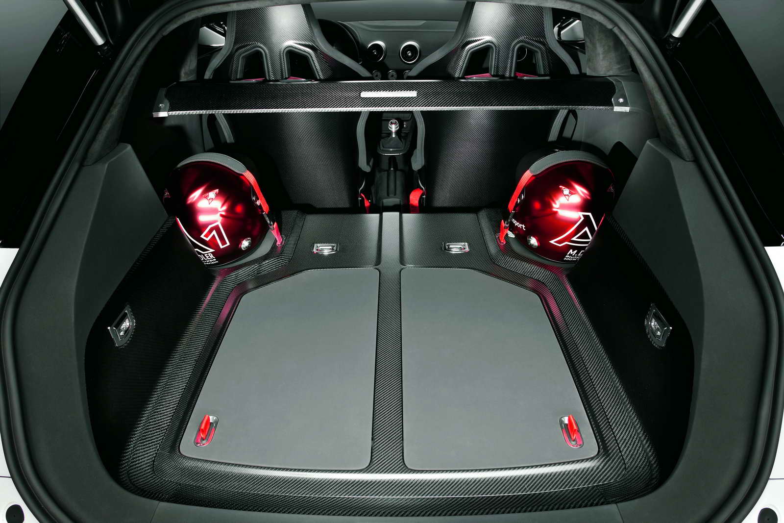 ¿Y el interior? Bueno, aquí también se han realizado numerosas modificaciones, eliminando de raíz todo aquello que no fuera necesario, con el fin de obtener la máxima eficacia (recordemos la excelente cifra obtenida en la báscula), con numerosos paneles realizados en fibra de carbono o en plástico reforzado con este material. Asientos de competición, cinturones de arnés o tiradores de tela, contribuyen también a sentirnos como Walter Röhrl en el Rallye de Montecarlo. Por supuesto, se han eliminado los asientos traseros y, en su lugar, dispondremos de una ubicación específica para nuestros cascos. Sólo faltan unas barras antivuelco y un comisario realizando la cuenta regresiva para la salida…