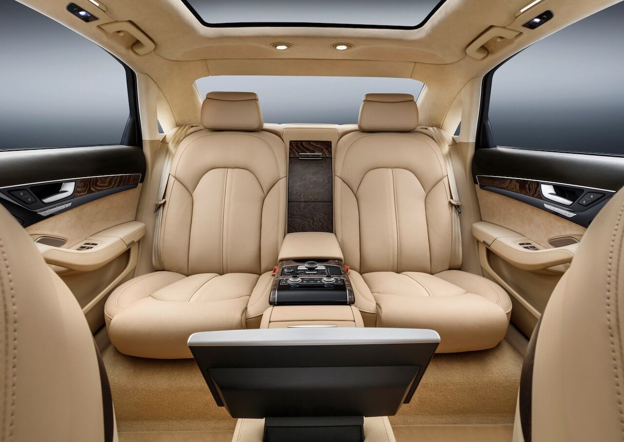 El Audi A8 L Extended aumenta 1,09 metros la longitud de un A8 L convencional. Con su distancia entre ejes de 4,22 metros, ofrece un espacio sublime para las personas que ocupen sus seis asientos. Y ojo, que no es ninguna extravagancia, pues desde Audi aseguran que ya están recbiendo clientes para este, cuanto menos, curioso vehículo. No es de extrañar, pues solamente el Mercedes-Maybach Pullman ofrece un tamaño tan generoso, gracias a sus 6,5 metros de longitud.
