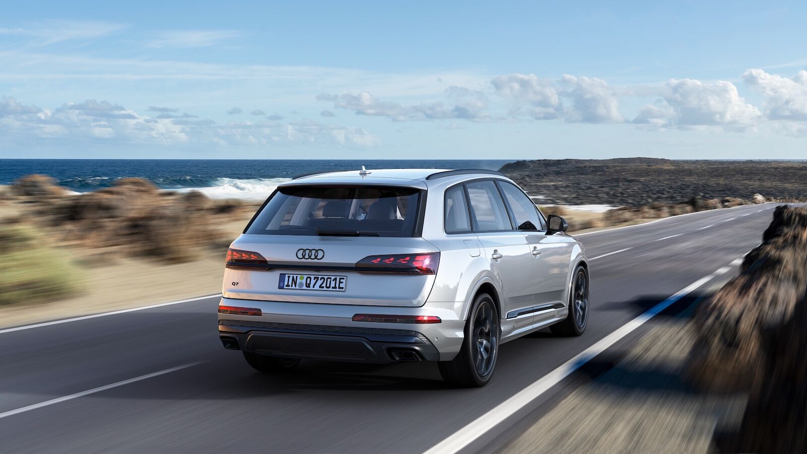 Además, el equipamiento del Audi Q7 TFSIe puede contar con faros HD Matrix LED como opción, que permiten cambiar la firma luminosa. En el Q7 60 TFSIe la suspensión neumática forma parte del equipamiento de serie. Por primera vez en los híbridos enchufables se oferta la dirección a las cuatro ruedas (opcional).