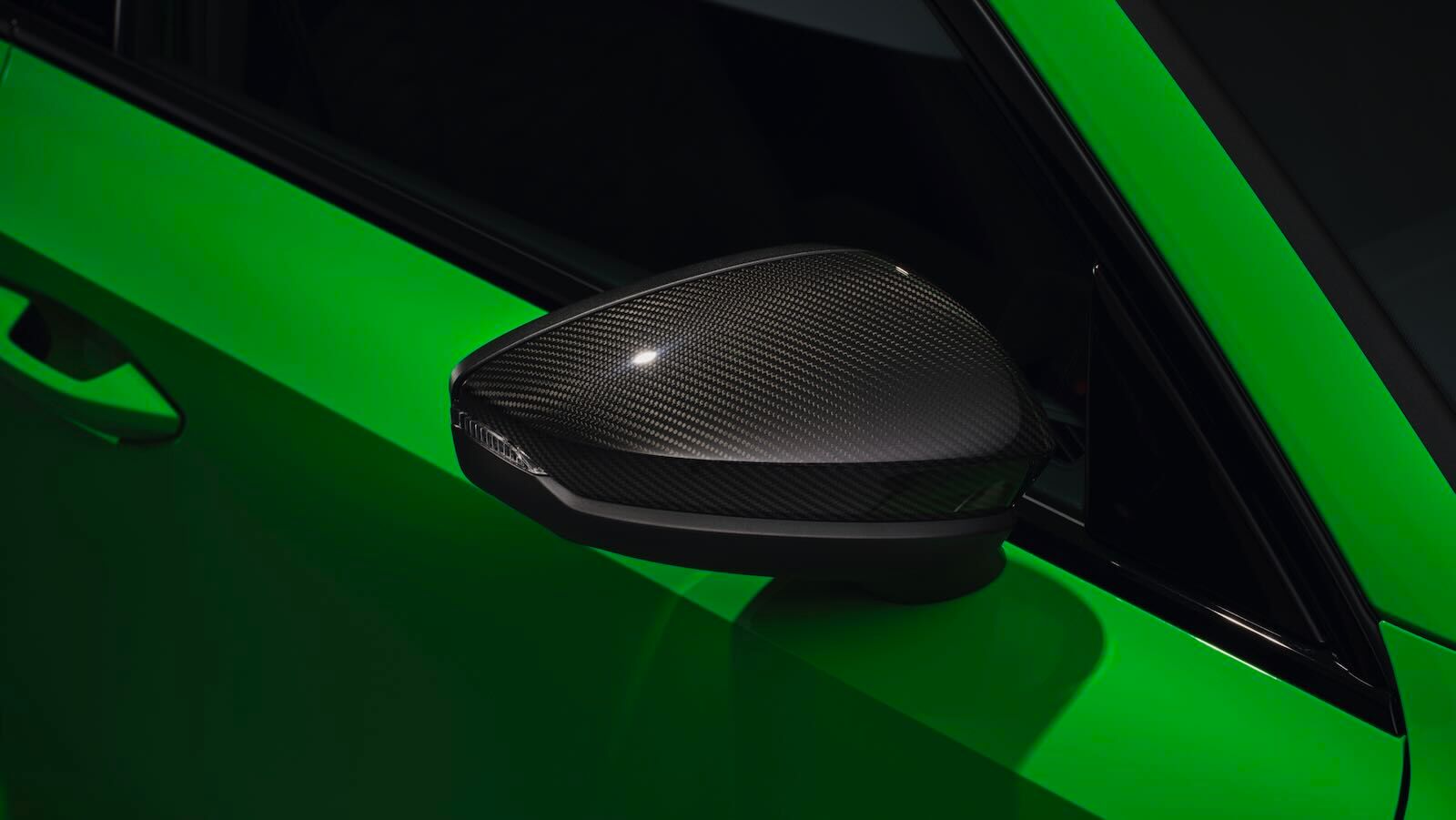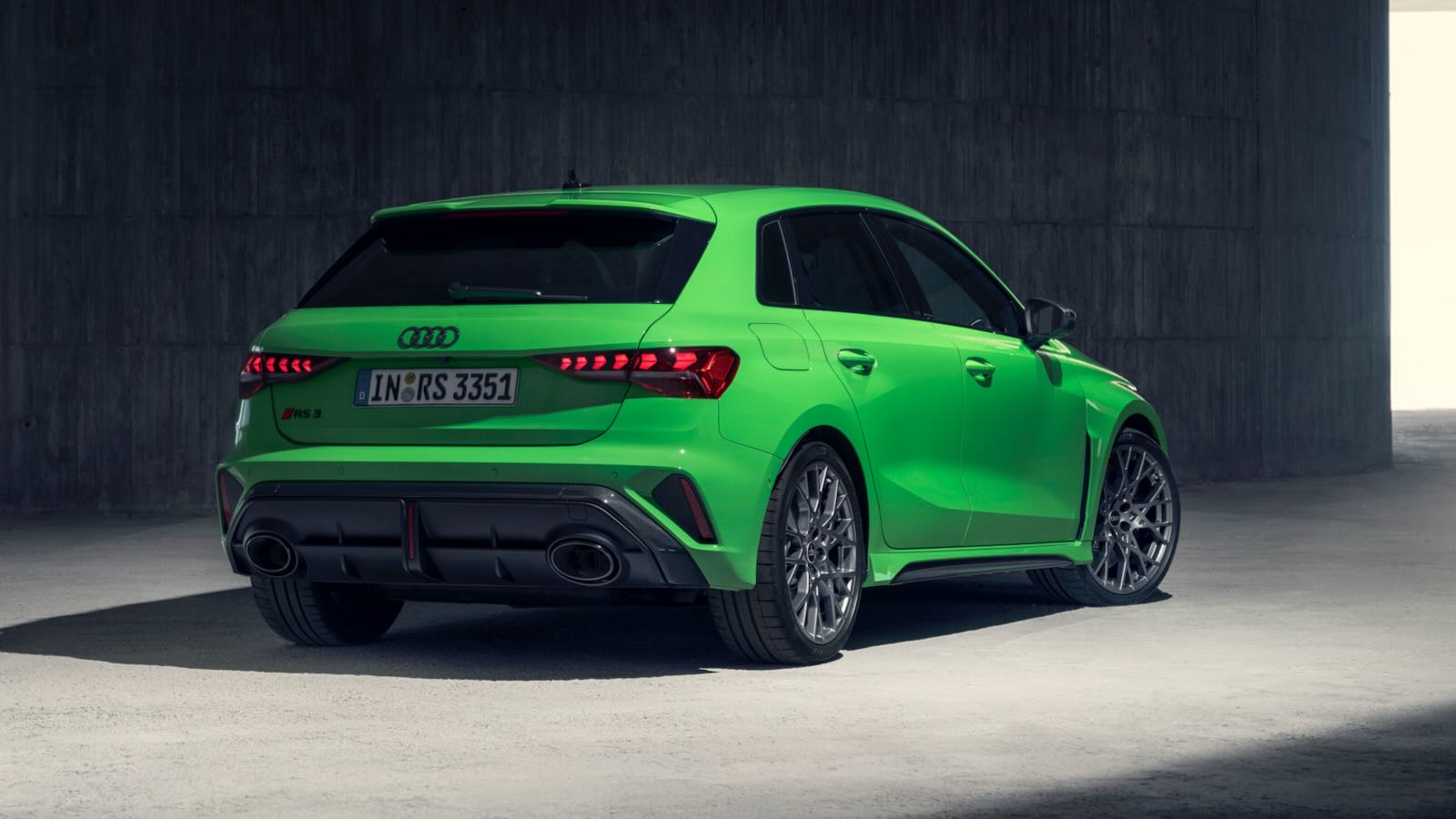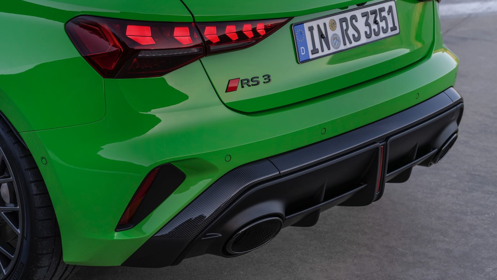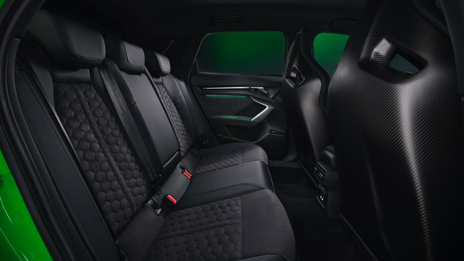 De serie tiene llantas de aluminio de 19 pulgadas en negro mate con un diseño de 5 radios en Y. Como opción hay un diseño que recuerda a la edición RS 3 performance, con diez radios en cruz y acabadas en gris oscuro mate o en negro metalizado. Por cierto, los neumáticos semi-slick Pirelli P Zero Trofeo R están disponibles como opción. También hay paquetes de carbono y negro de alto brillo para personalizar el coche, con carcasas de los retrovisores en color de la carrocería, negro o carbono.