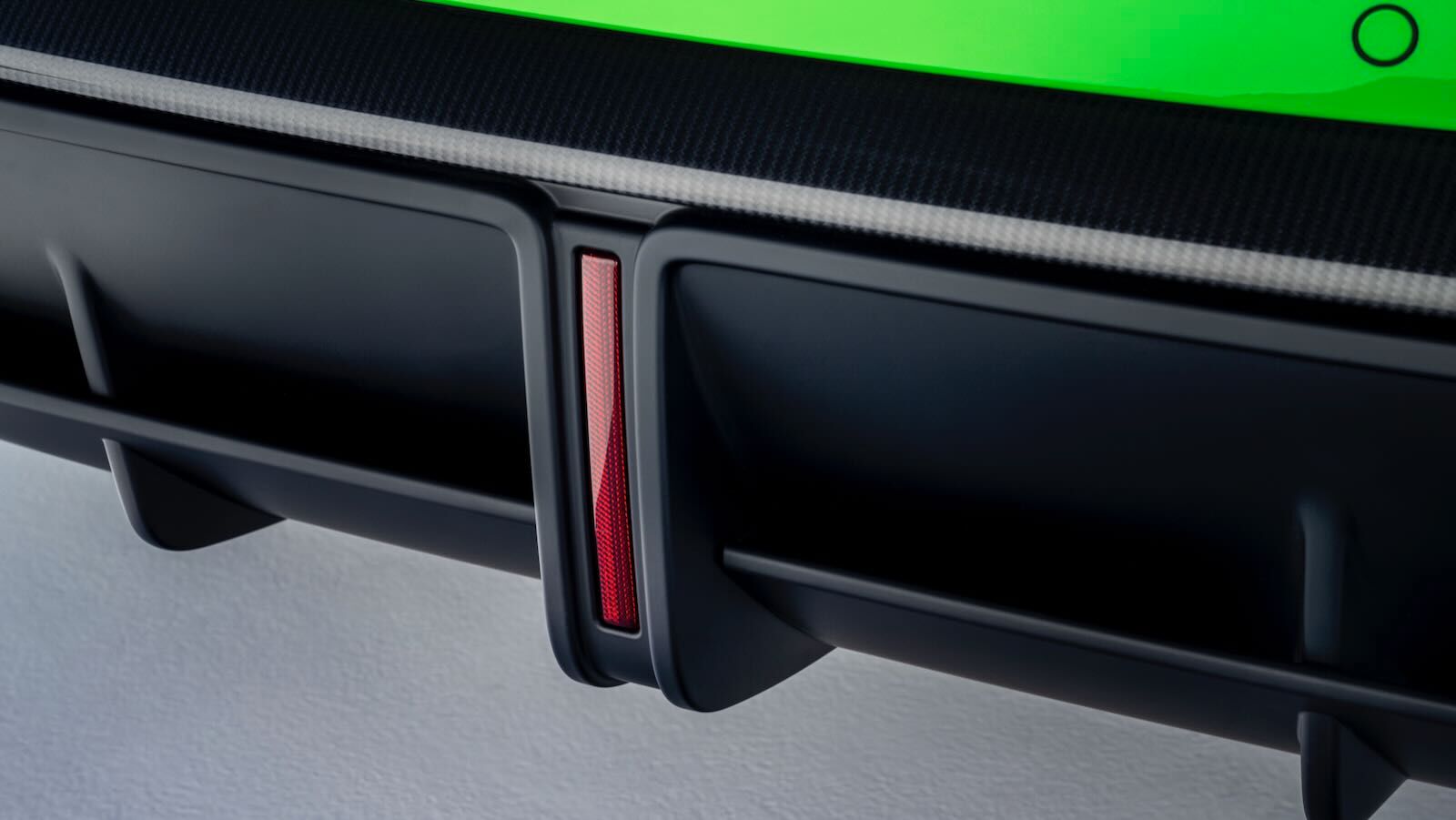En la zaga los reflectores laterales verticales imitan a las tomas de aire delanteras y cuenta con un gran difusor específico, con un reflector rojo en el centro y embellecedores ovalados del sistema de escape RS con sus marcos negros. Los pilotos traseros estrenan grafismos, con flechas dinámicas que se mueven de dentro hacia fuera. Además, hay colores específicos para la carrocería, el Verde Kyalami y el Gris Kemora, nuevas pinturas metalizadas Azul Ascari y Rojo Progresivo y estrena el Gris Daytona mate.