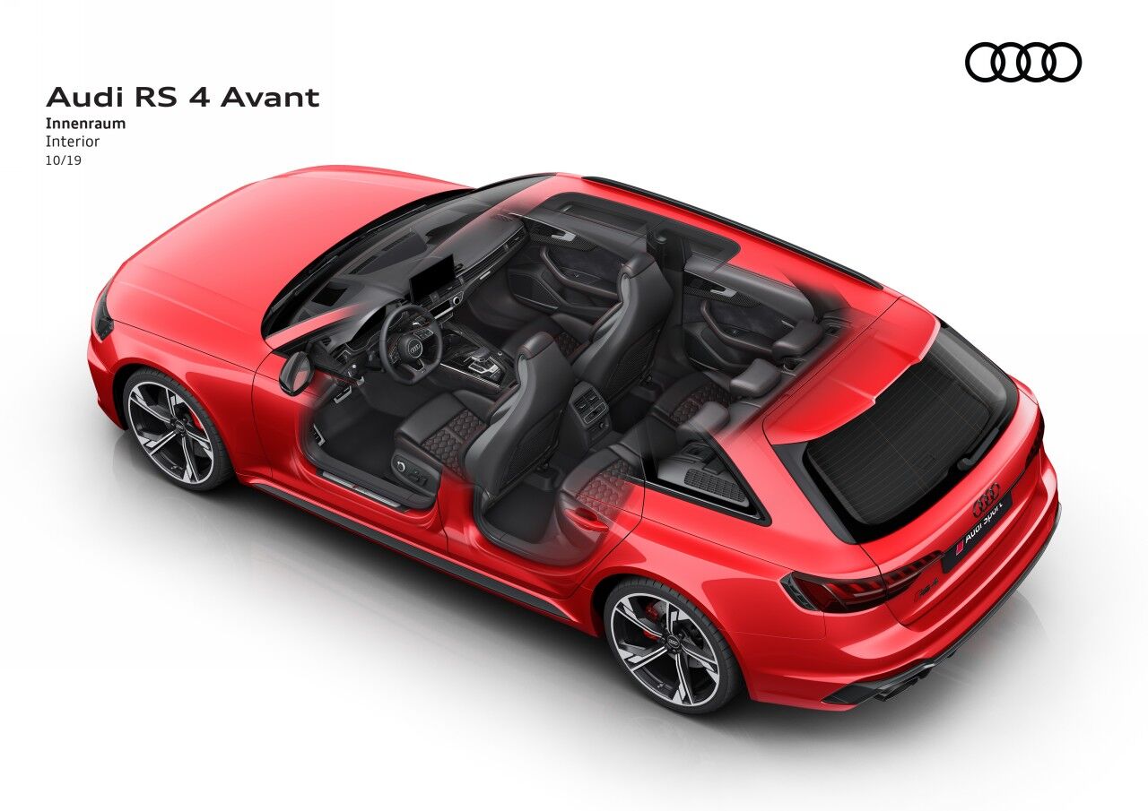 De serie, las barras de techo están acabadas en color negro mate. El alerón específico del RS y el difusor, así como los tubos de escape cromados RS, confieren al coche una apariencia distintiva. El sistema de escape deportivo opcional RS, con salidas decoradas en color negro, crea una experiencia acústica única. De acuerdo con el comunicado, el modelo de las fotos se muestra en Tango Red, pero Audi dice que se podrá escoger con el icónico Nogaro Blue.