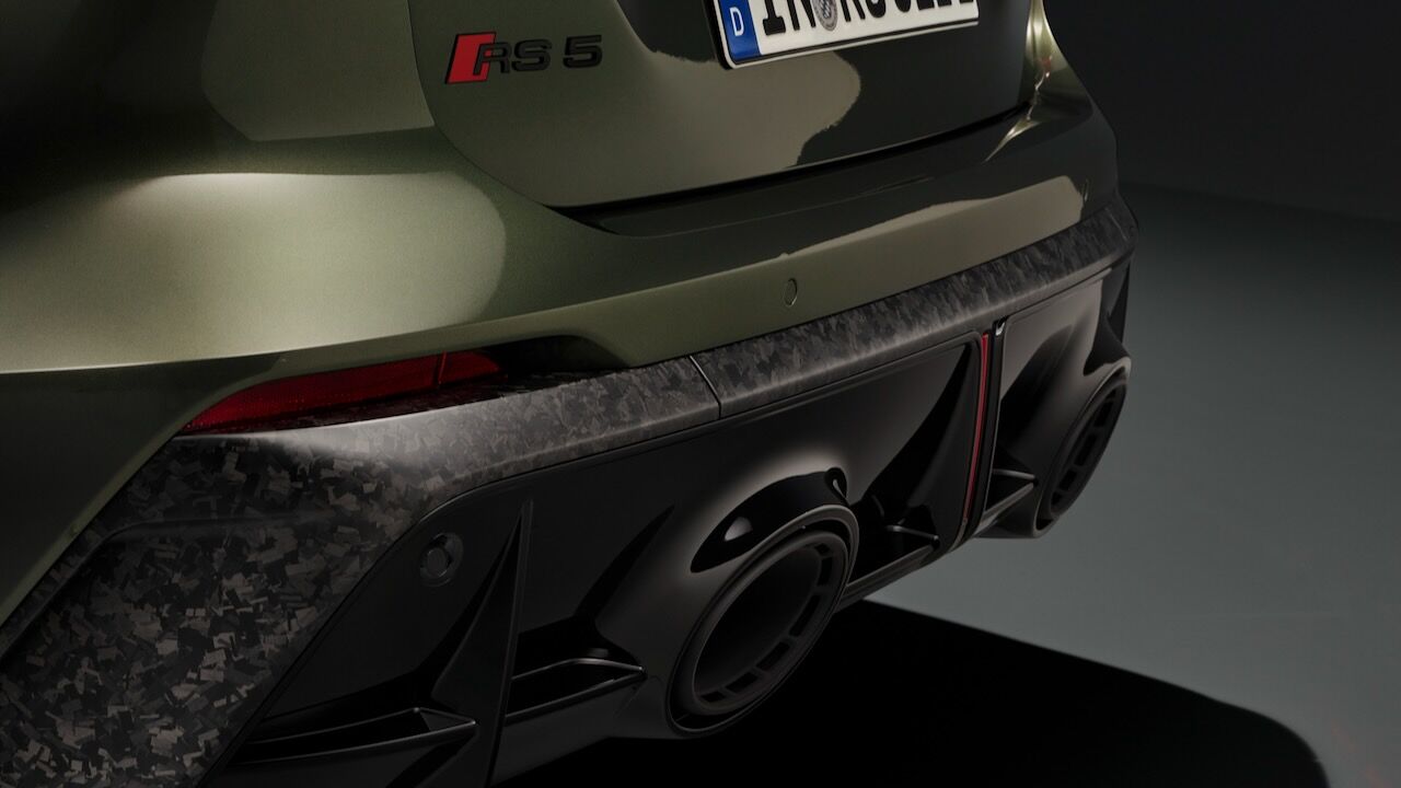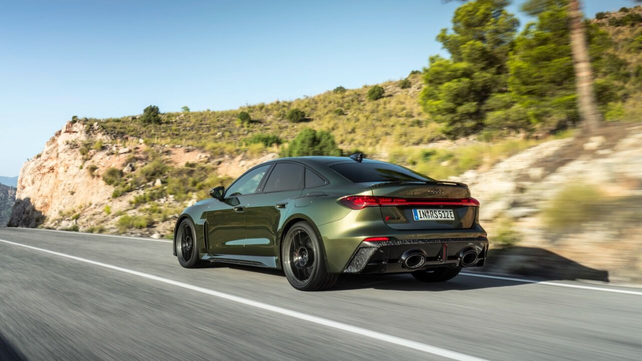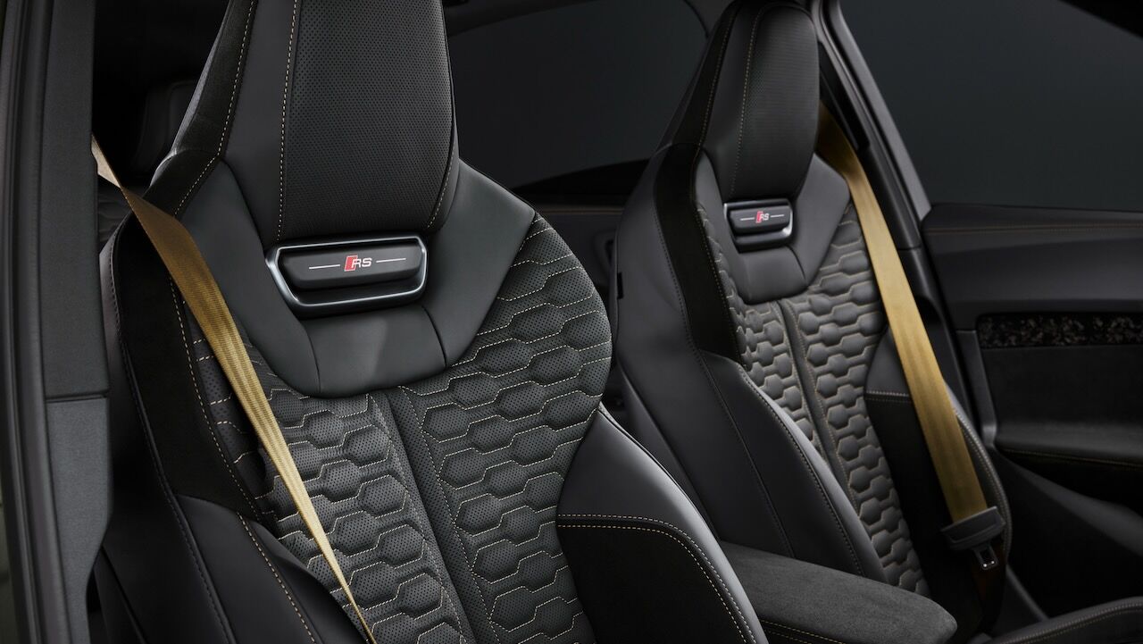A esto habría que sumar una carrocería un 10% más rígida que la del A5 base y una nueva suspensión deportiva RS. Tiene amortiguadores de doble válvula que mitigan los balanceos y mejoran la precisión, combinada con una dirección que recibe ajustes específicos y una relación 13:1 para ser aún más directa. La frenada está patrocinada por un sistema RS con discos de acero de 420 mm delante y 400 mm detrás. Opcionalmente, se pueden montar los carbocerámicos de 440 y 410 mm respectivamente, que son unos 30 kg más ligeros.