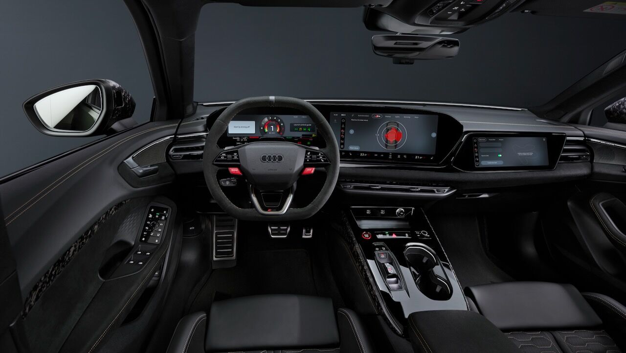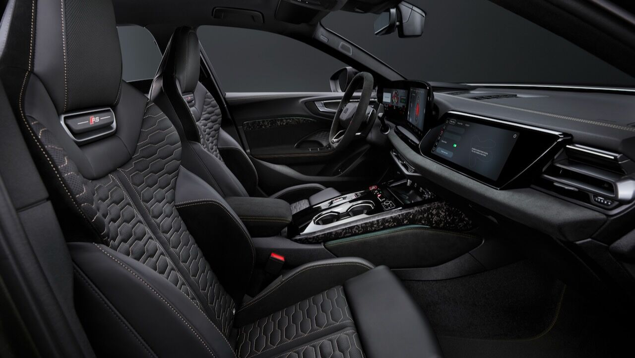 El interior es un entorno digital muy enfocado al conductor. Como en otras versiones, destaca el panel panorámico que fusiona la instrumentación digital de 11,9 pulgadas con una pantalla táctil central de 14,5 pulgadas, a lo que se suma un display adicional de 10,9 pulgadas exclusivo para el copiloto. Todo ello arropado por unos asientos deportivos RS con costuras en forma de panal, además de elementos cubiertos por materiales más cuidados y de corte deportivo. Microfibra dinámica, cuero Nappa, tejido Softwrap, fibra de carbono o aluminio están en la lista...
