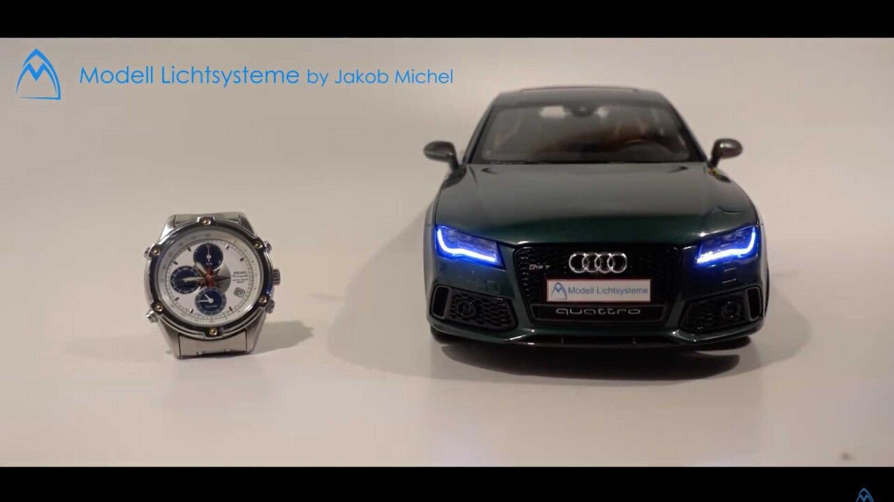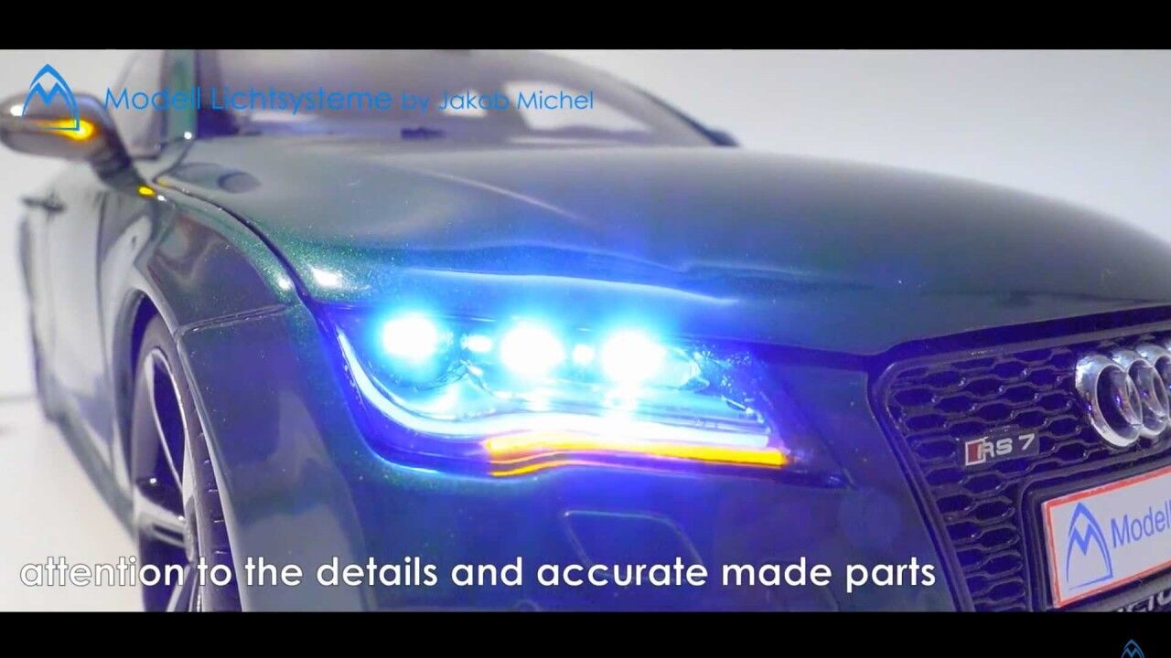 El canal de YouTube Modell Lichtsysteme cogió una unidad ya existe e increíblemente detallada y ha instalado un sistema de iluminación que, a buen decir, coinciden con los del vehículo del mundo real. De hecho, el nivel de finura es una locura. Los faros no solo son completamente funcionales y tienen sus respectivos intermitentes (de freno y marcha atrás), los frontales son capaces de adoptar un tono azul frío, mientras que las de posición consiguen un color cálido.
