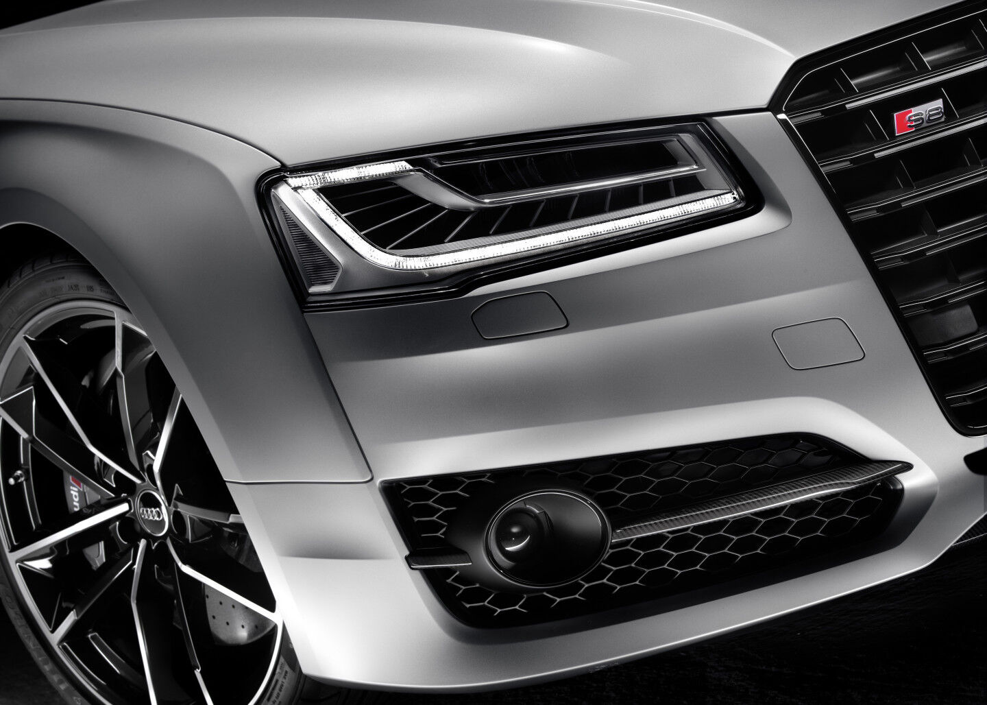 Además de todos estos detalles técnicos que llevan al Audi A8 a una nueva dimensión, había que diferenciar al modelo del resto de la gama. Por fuera destaca el discreto alerón trasero, integrado en la tapa del maletero (los más sibaritas podrán solicitarlo en en fibra de carbono), una decoración especial de la parrilla con apliques en fibra de carbono, dos salidas ovaladas dobles para el escape (flanqueando un difusor negro), los faros delanteros con tecnología Matrix LED y el color exclusivo de la carrocería.