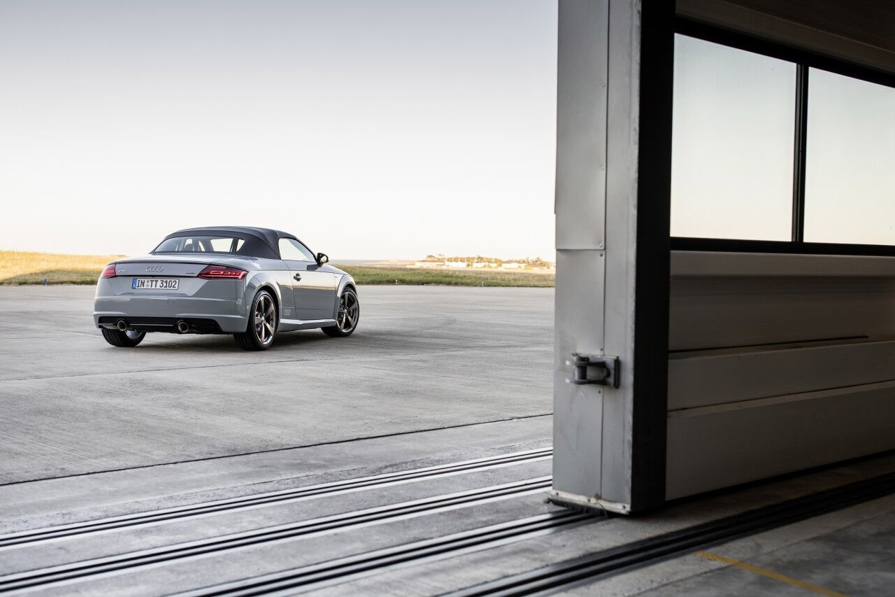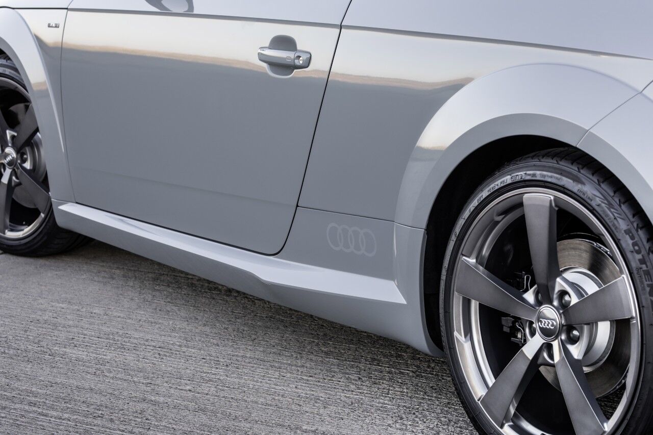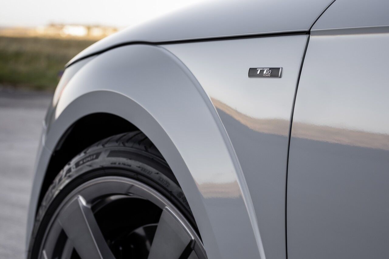 Este ejemplar puede pedirse tanto en carrocería coupé como en la descapotable. La carrocería podrá ir en los colores gris nano o gris fecha, mientras que la capota del Roadster también va en gris. En el exterior se podrán apreciar elementos distintivos como las llantas de 19 pulgadas con diseño específico, pinzas de freno en color negro, salidas de escape en acero inoxidable inspiradas en las del prototipo y logotipos que rezan «TT 20 years» en los laterales.