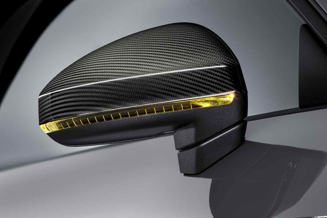 En la zaga destaca el alerón fijo, apoyado en dos finas estructuras dobles, pero puede equipar opcionalmente uno que se despliega automáticamente. Los pilotos traseros son de LED pero podrán ser Matrix OLED (diodos orgánicos de emisión de luz) en diseño 3D. Bajo el paragolpes se encuentra el difusor y dos tubos de escape elípticos a los lados. Y en el lateral, los estribos con formas aerodinámicas que consiguen coeficiente aerodinámico de 0,33 (0,32 el Coupé). Puede elegirse en los mismos nueve colores que la versión cerrada y hay paquetes opcionales aluminio mate y negro brillante para varias zonas.