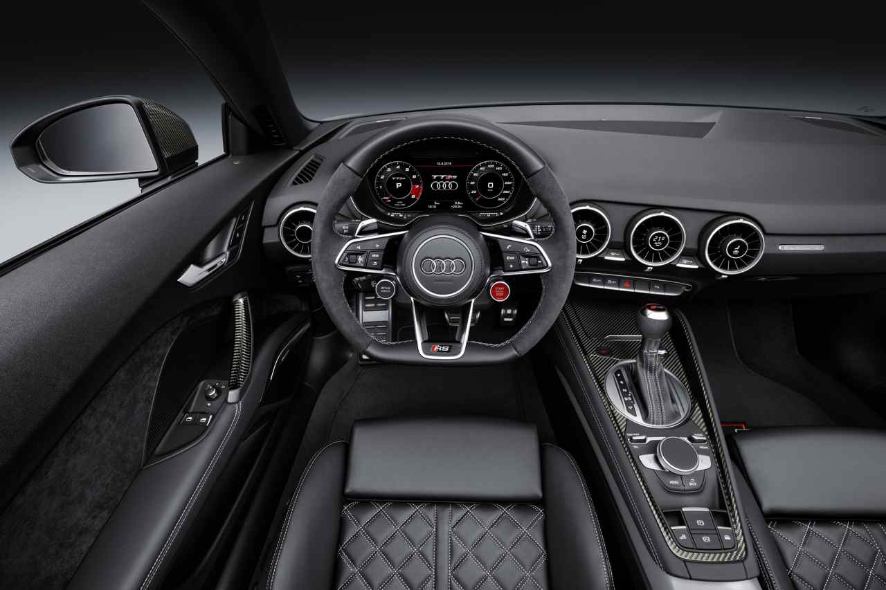 Destaca el volante deportivo de cuero, con levas para el cambio y dos grandes botones satélite: uno para arrancar y parar el motor y otro para manejar el sistema de conducción dinámica Audi drive select. Por supuesto, cuenta con el Audi virtual cockpit de serie (una pantalla TFT de 12,3 pulgadas que muestra información, con tres modos de visualización distintos) de serie.