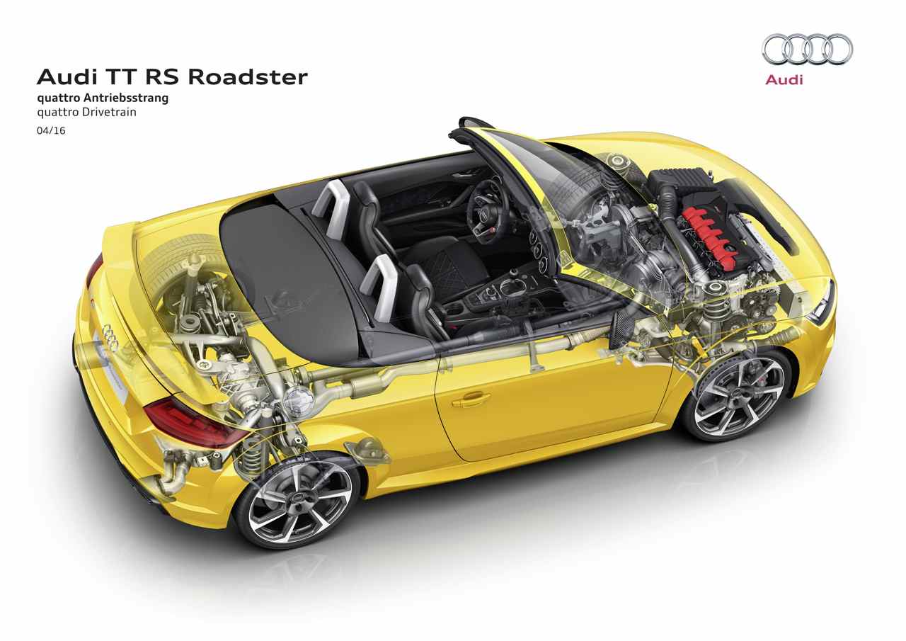 Esta transmisión dispone de un sistema launch control para mejorar la aceleración, que es de por sí muy buena. El nuevo Audi TT RS Roadster 2016 acelera de 0 a 100 km/h en 3,9 segundos (3,7 el Coupé) y alcanza una velocidad máxima de 250 km/h (podrá aumentarse hasta los 280 km/h bajo pedido). Son prestaciones que dejan muy atrás a la otra versión especial de la gama, el TTS Roadster de 310 CV de potencia.