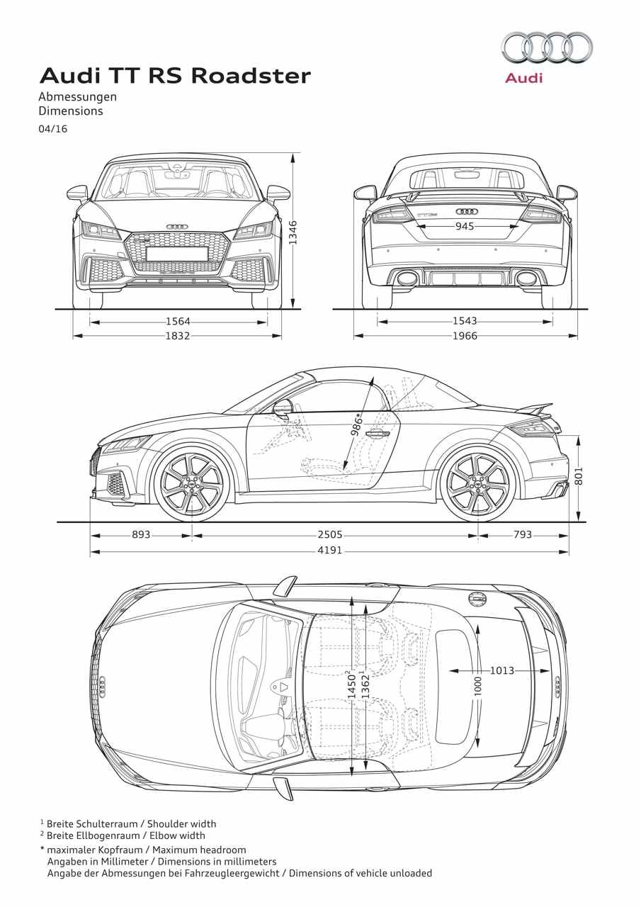Las medidas exteriores son clavadas a la versión coupe. El nuevo Audi TT RS Roadster 2016 mide 4,19 metros de longitud, 1,83 metros de anchura y apenas 1,34 metros de altura. En la parrilla Singleframe, con forma de nido de abeja, se vislumbra un logotipo quattro en la parte inferior, como en las entradas de aire, antesala del radiador de agua. Los faros de LED son de serie y, bajo pedido, se pueden montar unidades Matrix LED, que controlan la luz larga de forma inteligente y con una gran adaptabilidad.