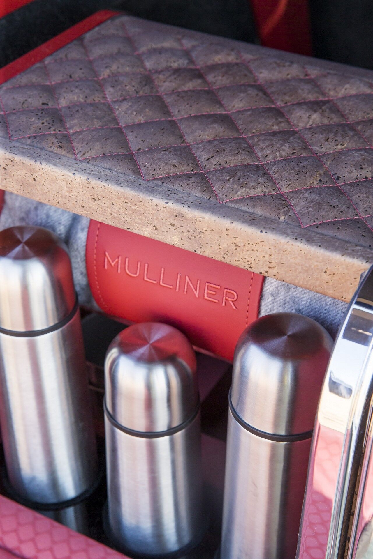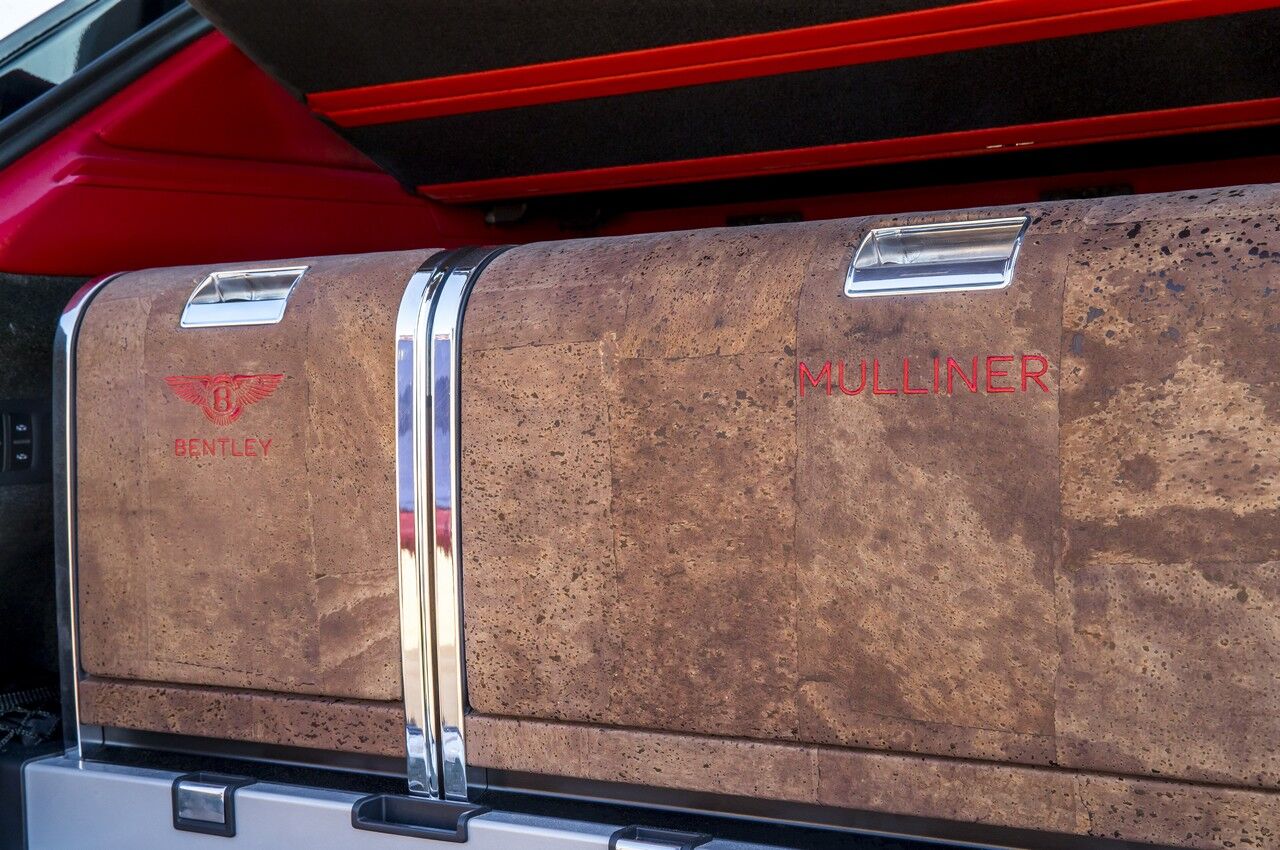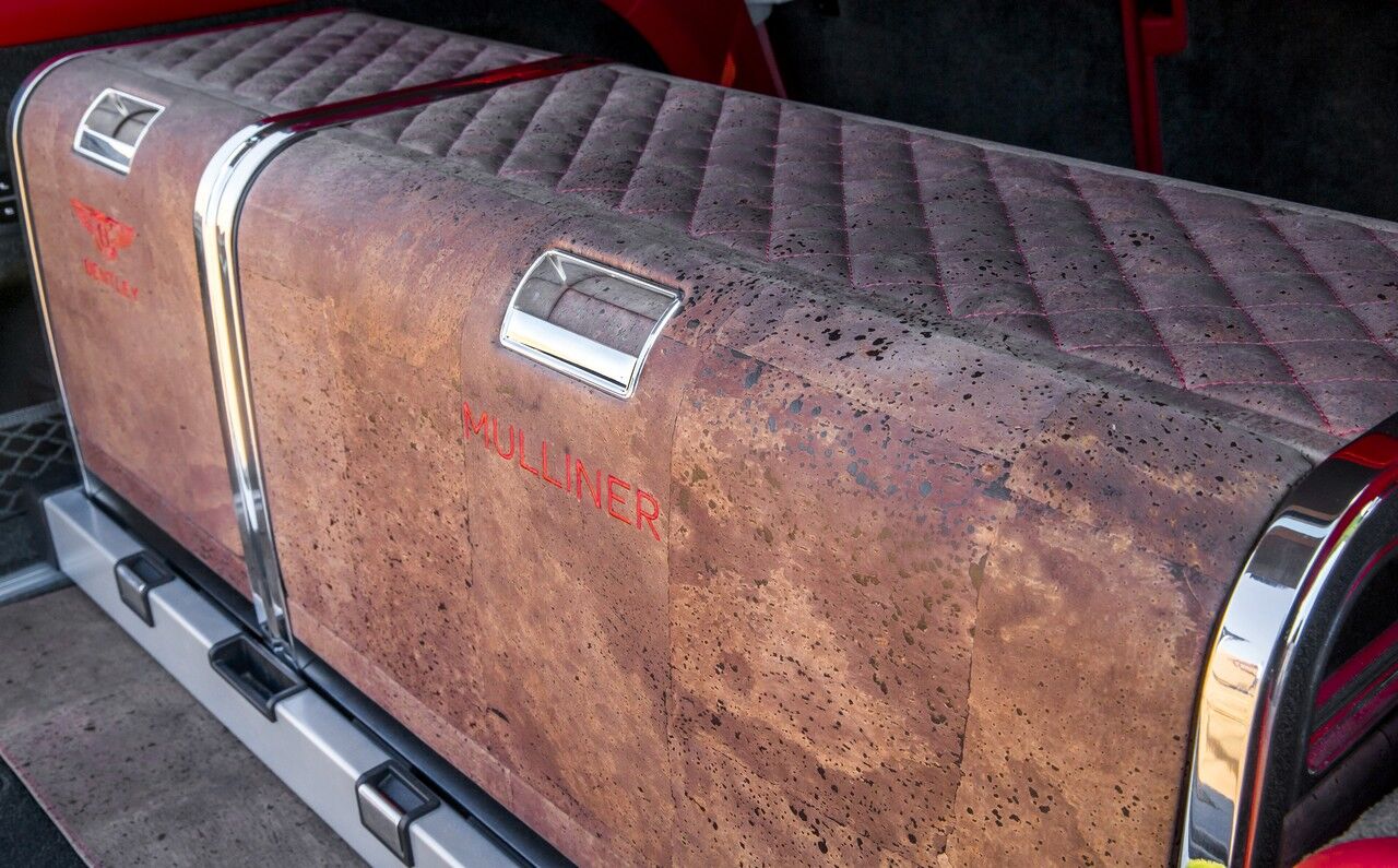 La moldura de la zona del copiloto tiene una escena de marquetería hecha con 430 piezas individuales de madera, un elemento que tarda nueve días en hacerse. Aunque las principales novedades del Bentayga Falconry se esconden en su maletero. Allí se han instalado dos cofres tapizados en un tejido de corcho, uno que es la estación de vuelo principal y el otro un compartimento para que el día sea más llevadero.
