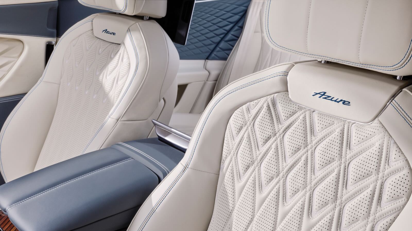 - Flying Spur Azure: Es la versión centrada en el bienestar, como indica la marca. Luce una parrilla negra brillante con 11 vanos cromados, llantas Azure de 22 pulgadas (plateado/metal mecanizado), asientos Wellness (delanteros y traseros) con seis programas de masaje y detalles en madera de nogal abierta, iluminación ambiental y costuras contrastadas.