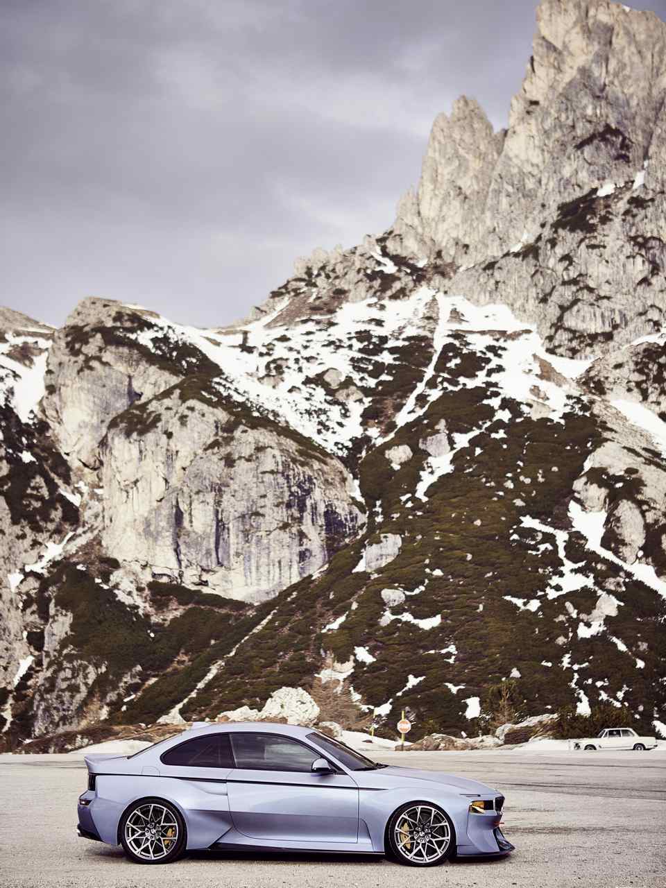La recreación del BMW 2002 potencia los rasgos del deportivo compacto, muy bajo, con una gran distancia entre ejes y un agresivo frontal inspirado en la mandíbula de un tiburón. Los pasos de rueda abultados o la línea de cintura, marcada con un listón cromado en el original y negro en el Hommage, son otros de los paralelismos.