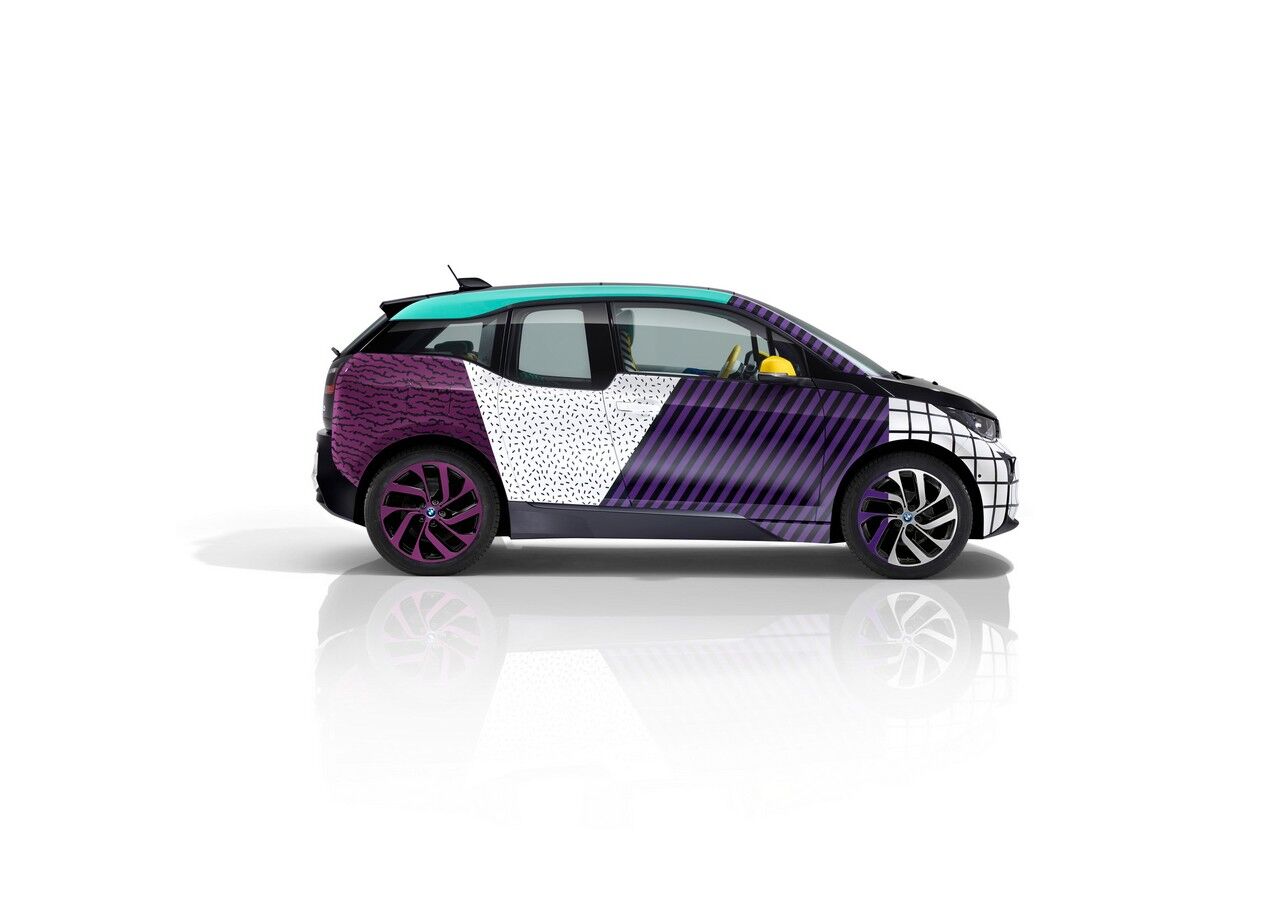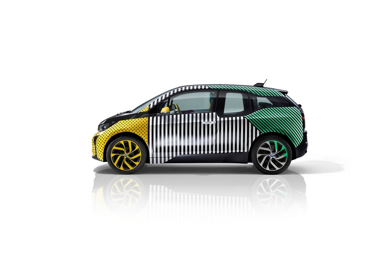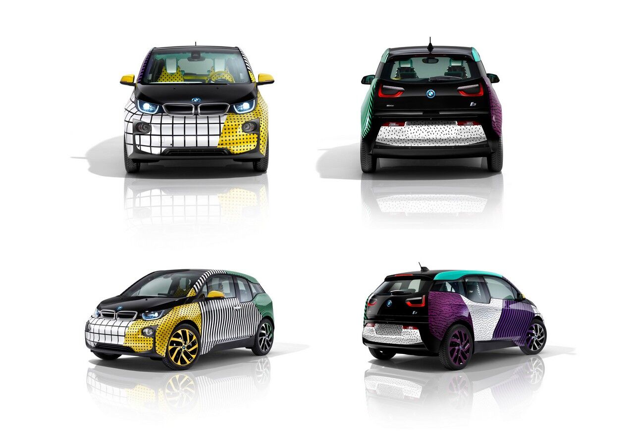 Los BMW i3 y BMW i8 se han transformado completamente por dentro y por fuera para esta ocasión. En su carrocería se mezclan colores en diferentes texturas y estampados. Por un lateral del i8 podemos encontrar rayas blancas y negras que lo hacen parecer una cebra, por el otro lateral en cambio vemos cuadros del mismo color. No faltan toques de amarillo en las esquinas, naranja rayado o un verde con una textura que parece de sandía en la zaga.