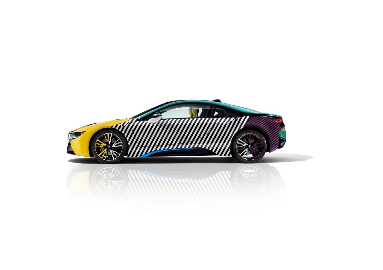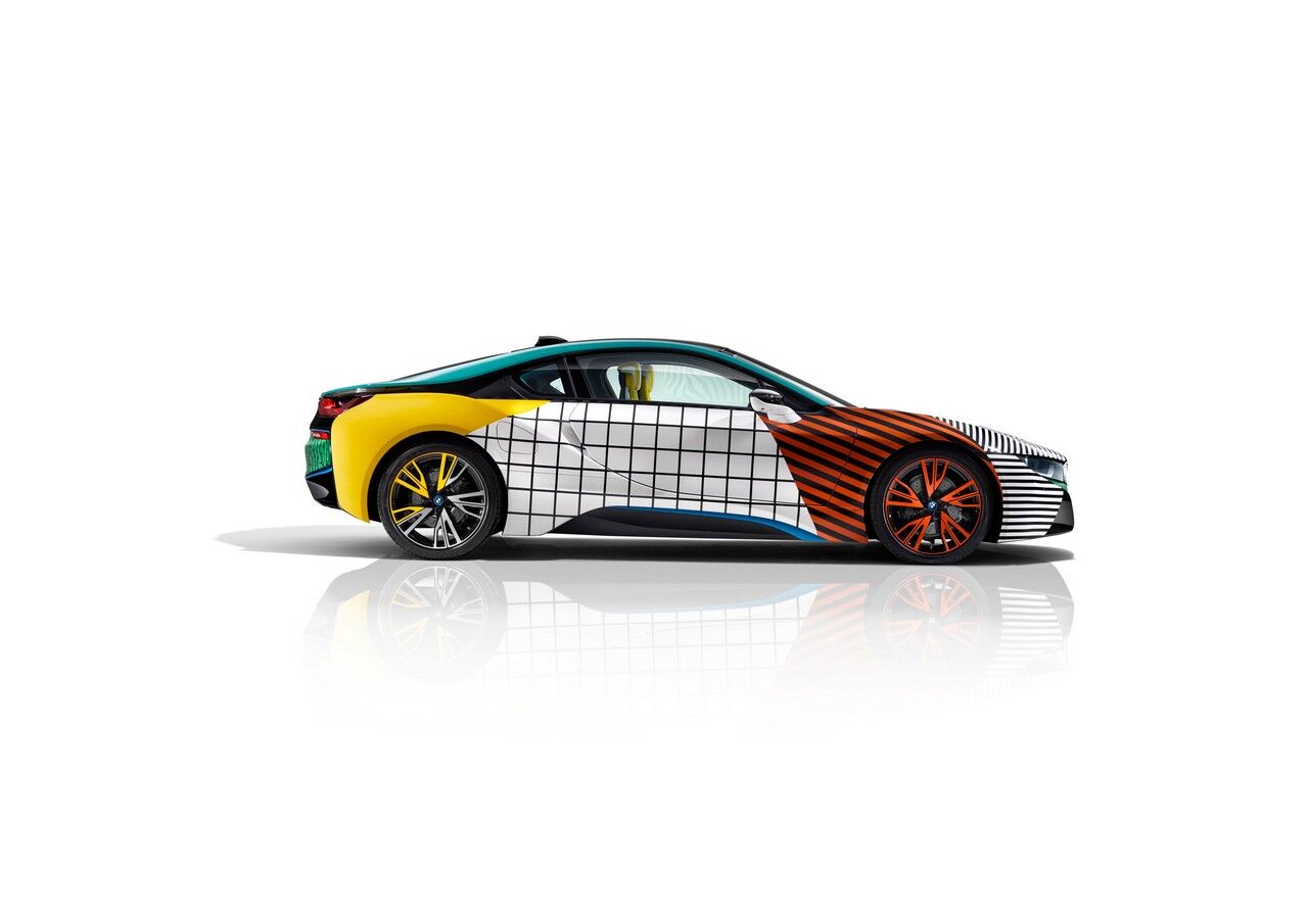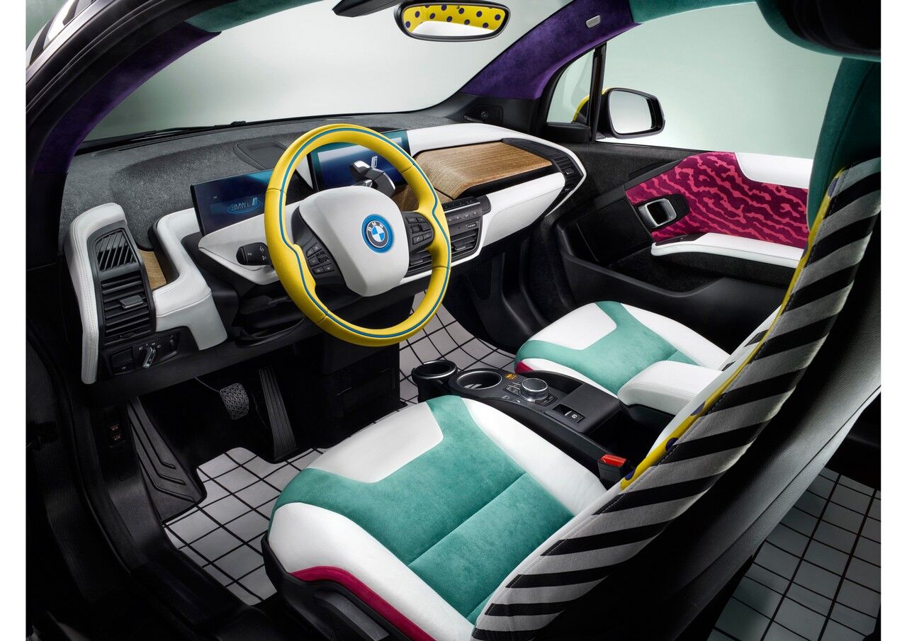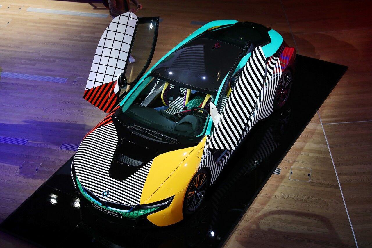 Los BMW i3 y BMW i8 se han transformado completamente por dentro y por fuera para esta ocasión. En su carrocería se mezclan colores en diferentes texturas y estampados. Por un lateral del i8 podemos encontrar rayas blancas y negras que lo hacen parecer una cebra, por el otro lateral en cambio vemos cuadros del mismo color. No faltan toques de amarillo en las esquinas, naranja rayado o un verde con una textura que parece de sandía en la zaga.
