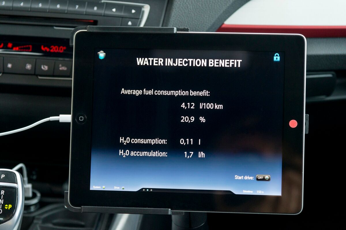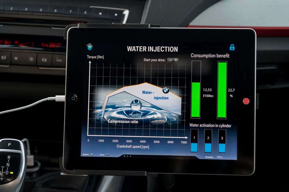 En esta ocasión, BMW ha realizado, por primera vez, pruebas de inyección de agua en un prototipo de motor gasolina de tres cilindros y 1.5 litros con un turbocompresor, montado en un BMW Serie 1. El agua se inyecta al tubo de aspiración y a las cámaras de combustión. De esta manera se logra alcanzar un equilibrio entre eficiencia y dinamismo que refleja mayor diversión y un adecuado nivel de consumo.