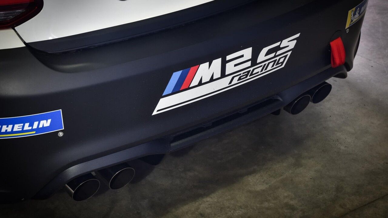 Exteriormente, el equipamiento de serie incluye un prominente difusor delantero, un techo de fibra de carbono, un alerón trasero ajustable para adaptar la carga aerodinámica a los distintos circuitos y unas llantas de aleación pintadas en negro mate de 18 pulgadas, que se envuelven en neumáticos Michelin lisos (slicks), ilegales y peligrosos de usar en la carretera abierta. BMW dice que algunos sistemas de ayuda a la conducción como el control dinámico de estabilidad y los frenos antibloqueo son ajustables para las condiciones de carrera.