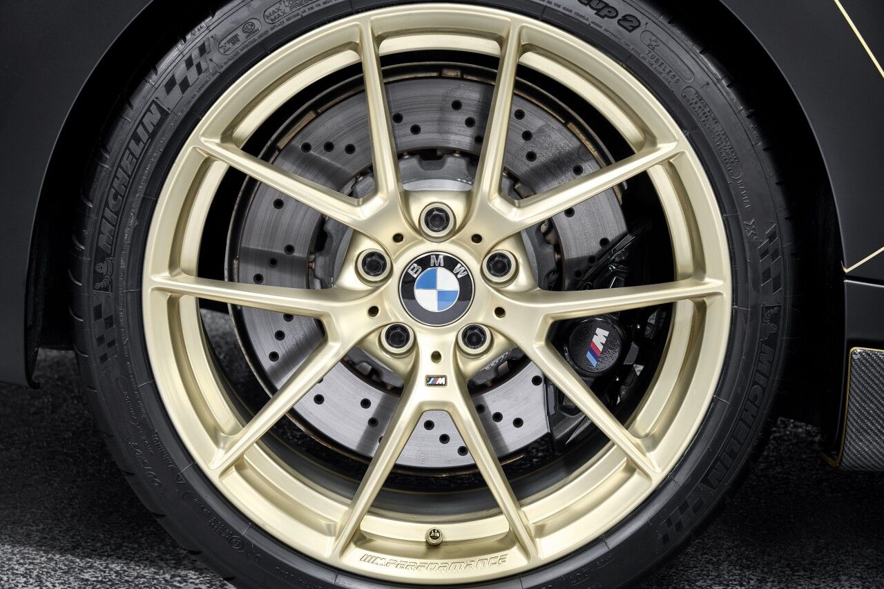 Siguiendo por las partes que afectarán positivamente al rendimiento, dentro de poco estará disponible el techo de carbono, que ahorra otros 6 kg. Una de los elementos más llamativos son las llantas forjadas de 19 pulgadas, que van en dorado y son 6 kg más livianas que las estándar, lo que consigue reducir las masas no suspendidas. Siguiendo por la zaga encontramos un portón de fibra de carbono (resta 5 kg) o un nuevo difusor trasero del mismo material (quita 0,5 kg).