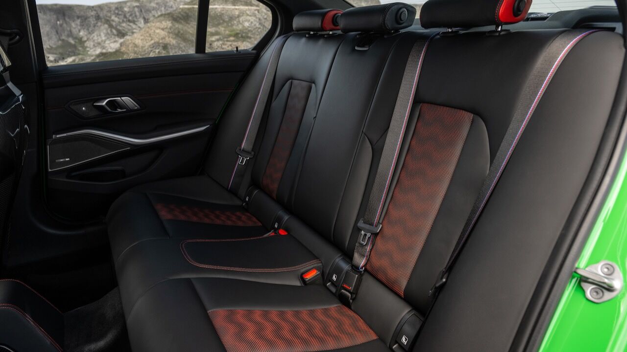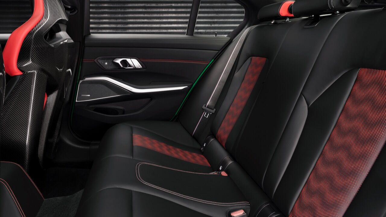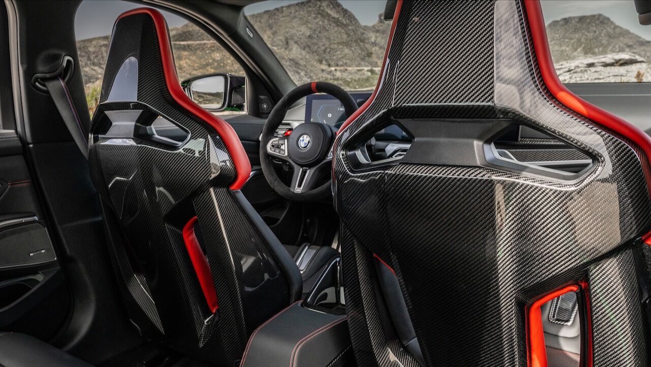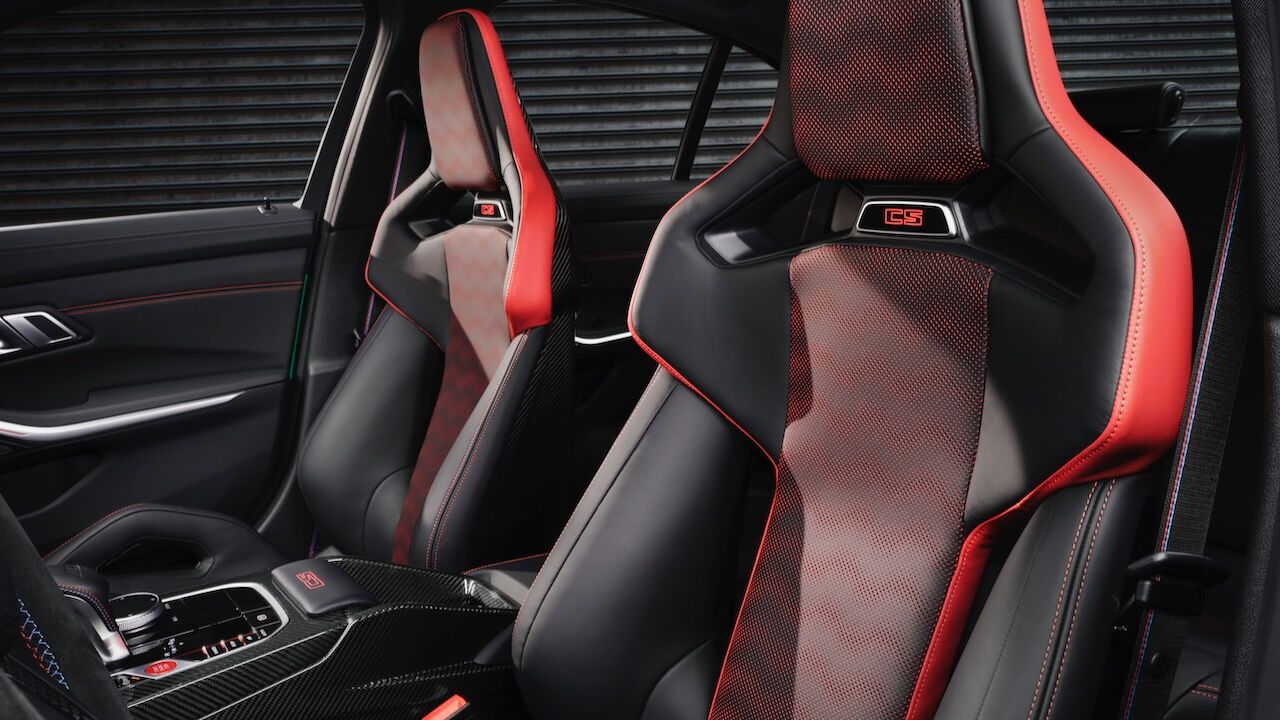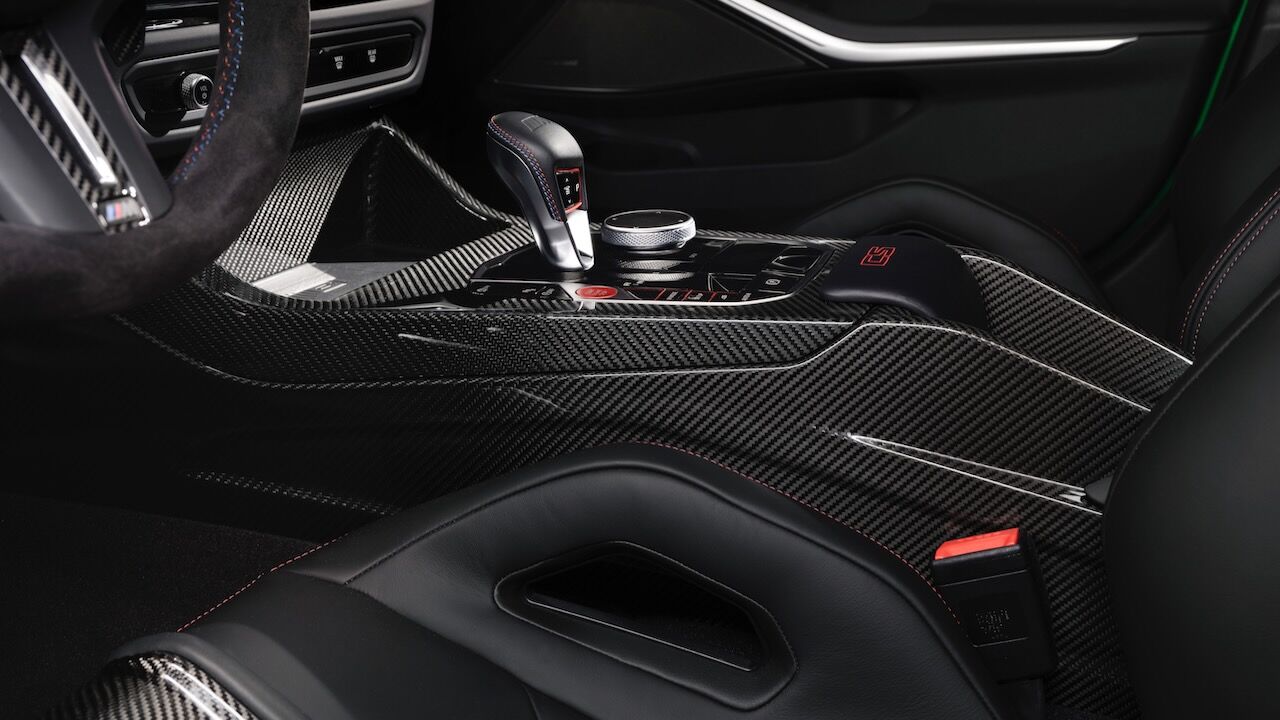 El interior se no queda atrás y ofrece una atmósfera realmente deportiva. Los principales culpables son los asientos tipo baquet M de fibra de carbono específicos. Cuentan con reglajes eléctricos y calefacción, además de tener el distintivo iluminado y de recibir una tapicería en cuero Merino con costuras en contraste. Va a juego con el volante M Alcántara con levas de cambio en CFRP y con la inscripción M3 CS en varios puntos del habitáculo. También se incluye el botón Setup en la consola central para un accedo directo a las funciones de conducción.