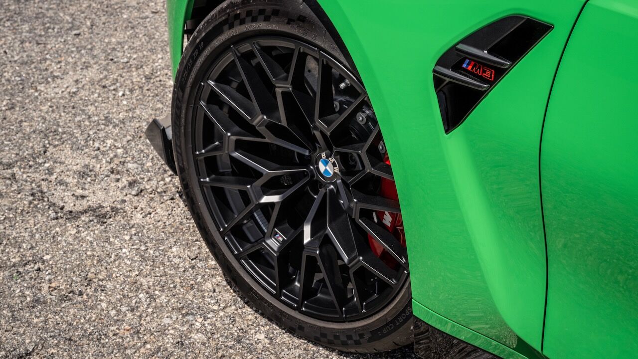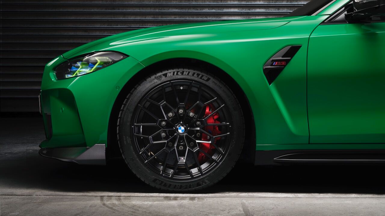 El BMW M3 CS también cuenta con algunos ajustes específicos para la versión que influyen al DSC y a su modo M Dynamic. Además, los amortiguadores controlados electrónicamente mejoran su respuesta en la pista y tiene de serie un equipamiento inédito. Incluye los frenos M Compound, aunque opcionalmente se ofrecen los carbonocerámicos M. Se verán a través de las llantas M forjadas en acabado dorado (o negro mate) en un tamaño de 19 pulgadas delante y 20 pulgadas detrás.