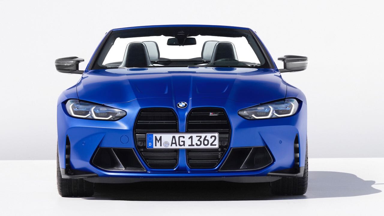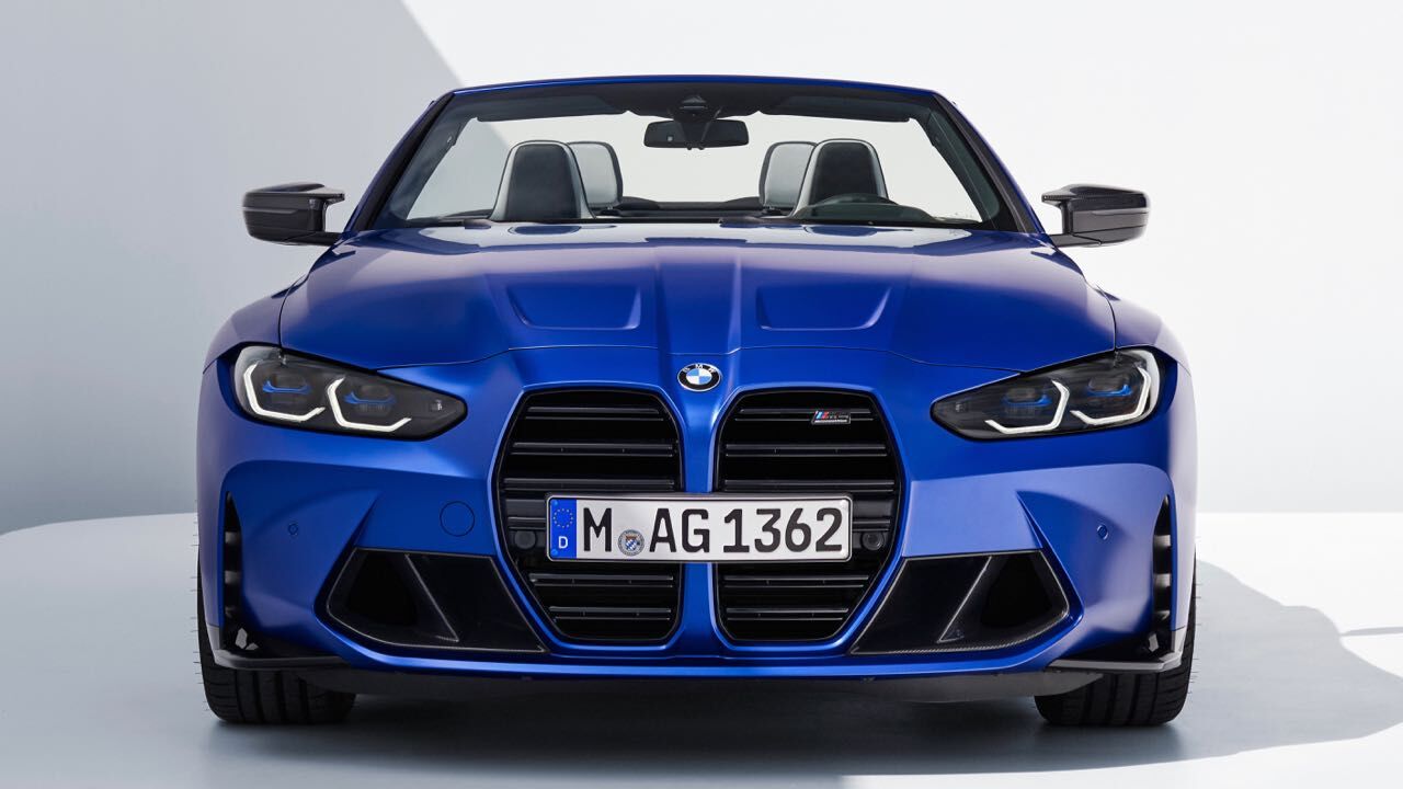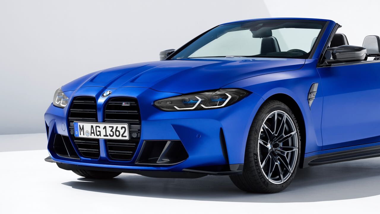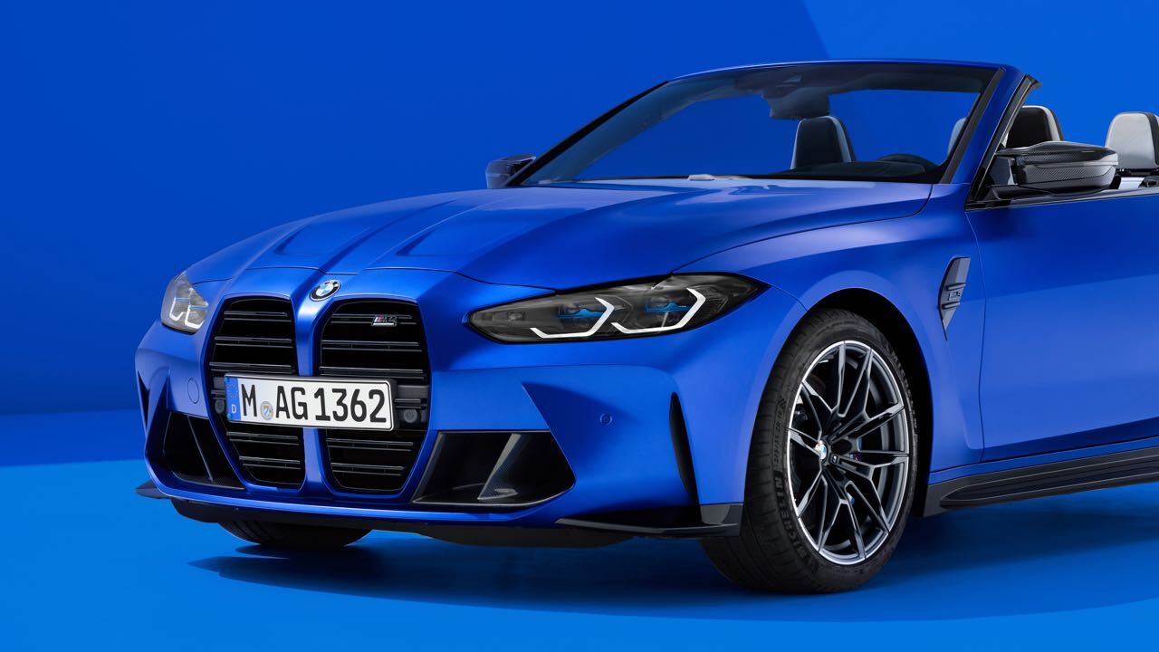 El nuevo BMW M4 Competition M xDrive Cabrio se diferencia también estéticamente de versiones más «mundanas» del Serie 4 Cabrio. También luce la parrilla ovoide en vertical, con dobles barras horizontales pintadas en negro. Se unen a ellas branquias verticales en los extremos, el spoiler en el borde inferior, que puede elegirse en fibra de carbono junto a faldones laterales y difusor trasero con el paquete M Carbon...