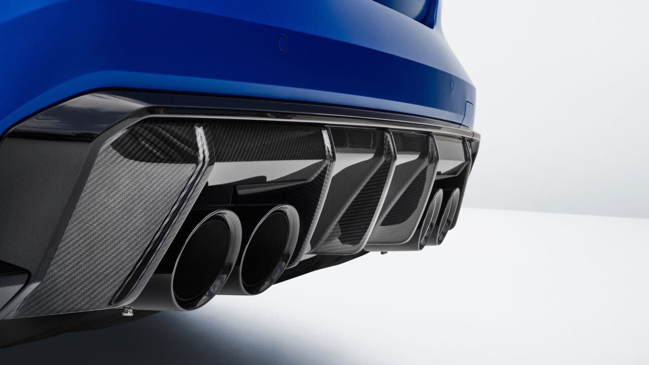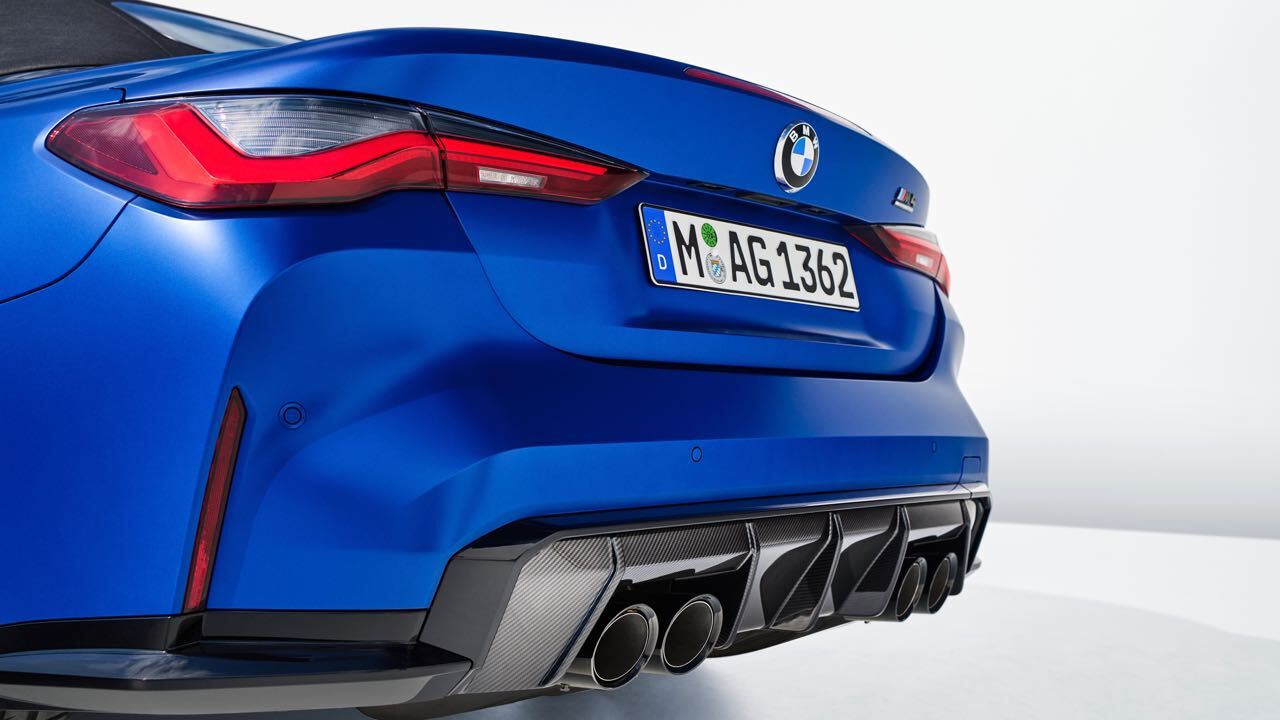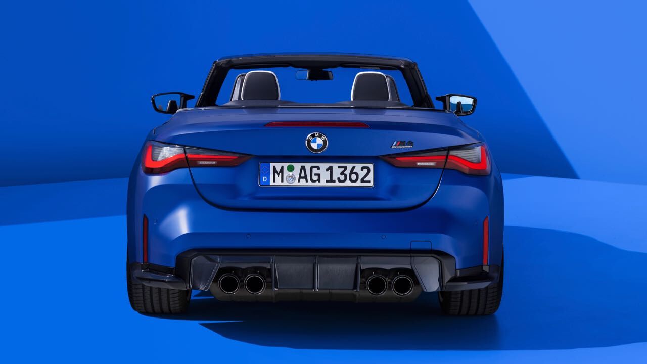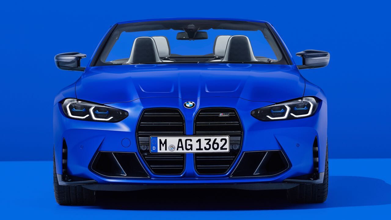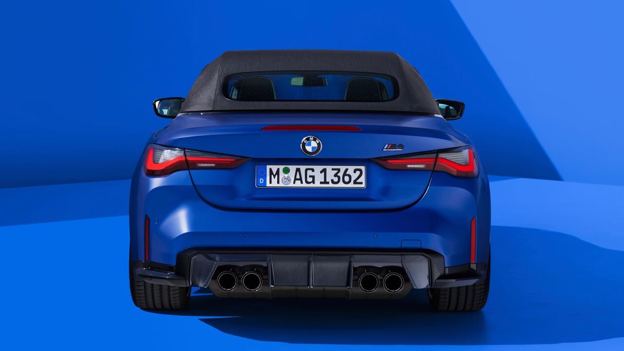 El nuevo BMW M4 Competition M xDrive Cabrio se diferencia también estéticamente de versiones más «mundanas» del Serie 4 Cabrio. También luce la parrilla ovoide en vertical, con dobles barras horizontales pintadas en negro. Se unen a ellas branquias verticales en los extremos, el spoiler en el borde inferior, que puede elegirse en fibra de carbono junto a faldones laterales y difusor trasero con el paquete M Carbon...
