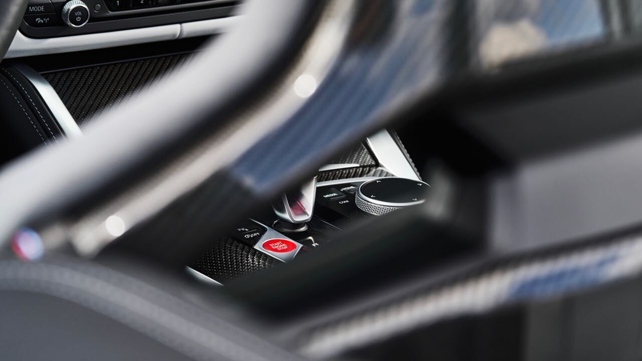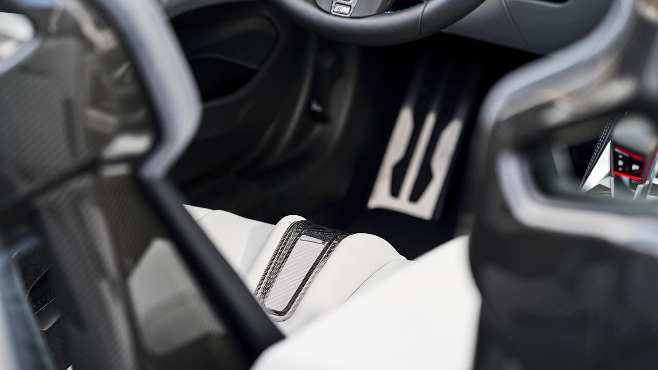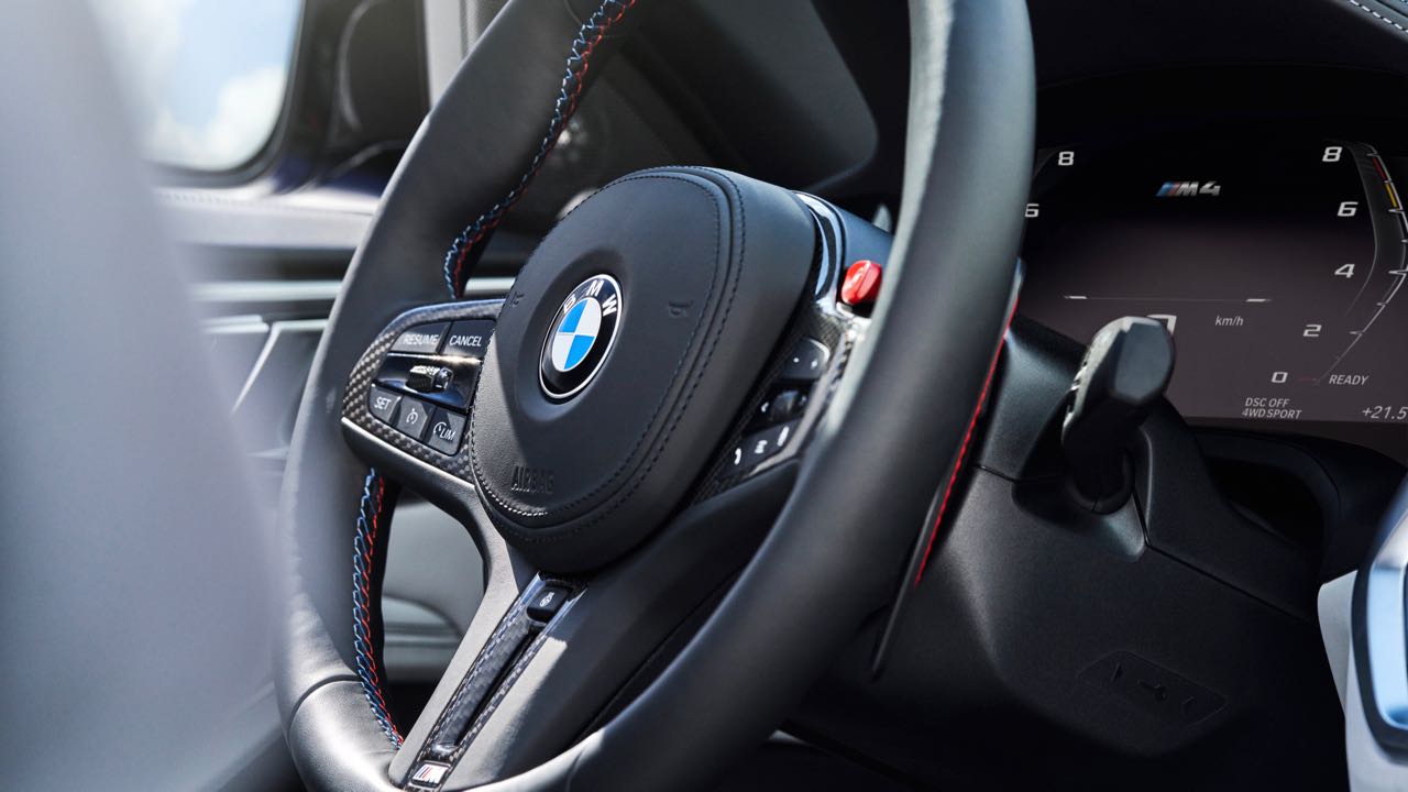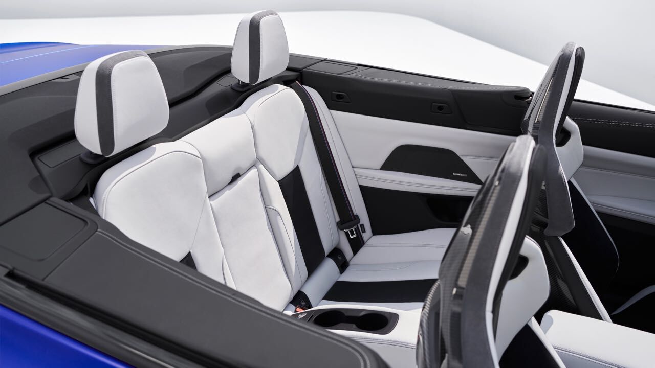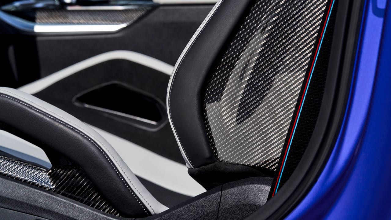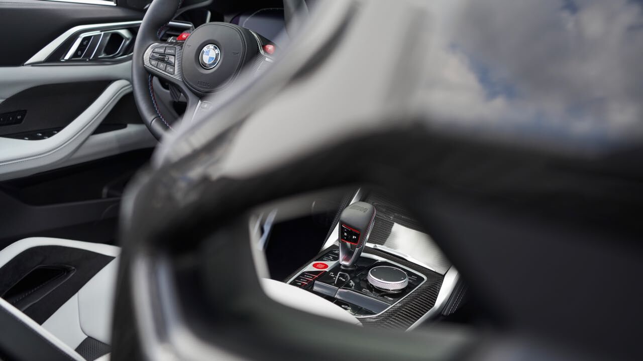 El interior es muy similar al de un M4 Coupé. No faltan asientos deportivos M de serie, tapizados en cuero (con ventilación opcional) y pueden tener estructura de carbono. Tiene un cuadro de mandos digital, el Live Cockpit Navigation Pro, y un volante cuenta con el botón M para ajustar configuración del motor, chasis, dirección, frenos y la tracción.
