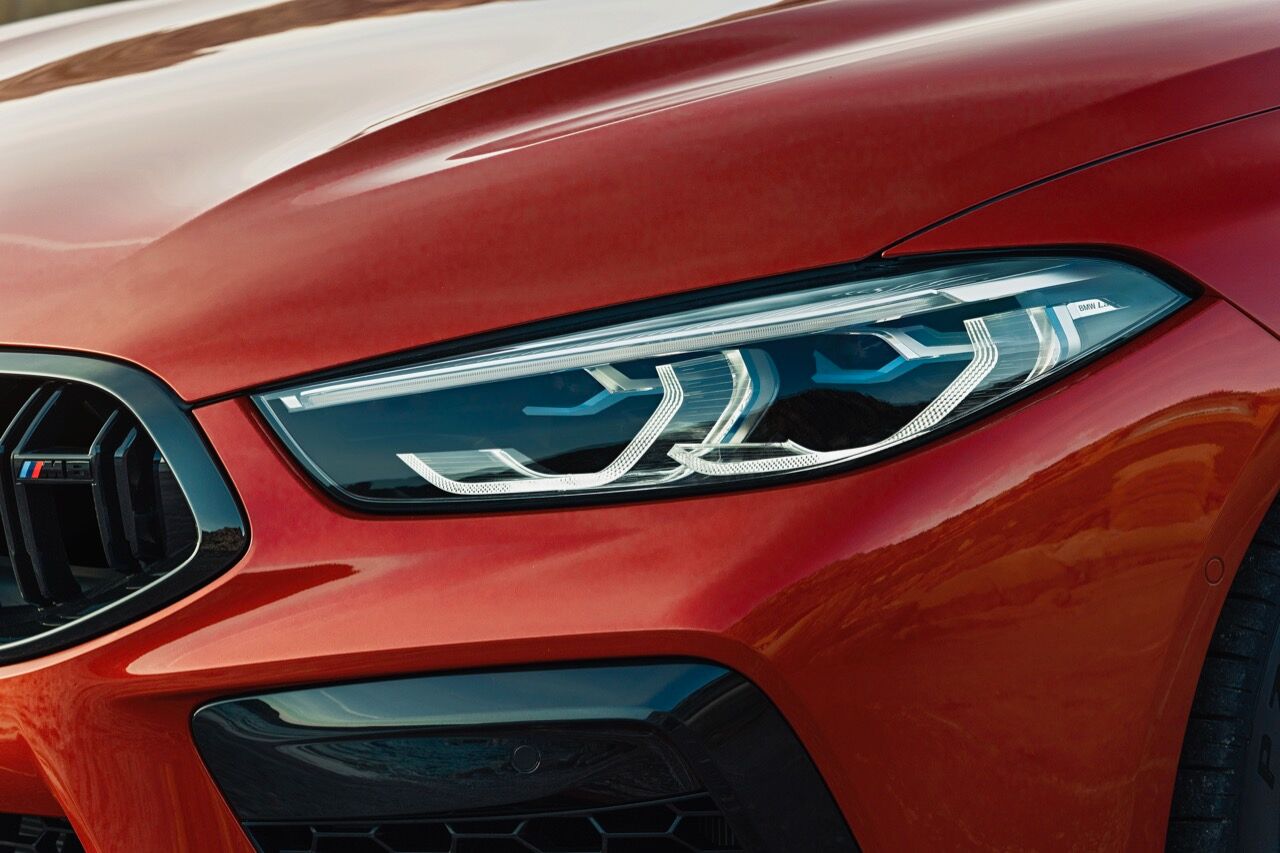 Porque a nivel estético también hay cambios en este M8 Competition Cabrio. Hablamos de paragolpes deportivos con tomas de aire de mayor tamaño, de detalles en negro (como la parrilla, los retrovisores o los escapes dobles M). Este modelo puede equipar opcionalmente los faros BMW Laserlight con tecnología láser, cuyo haz de luz puede llegar a los 600 metros de longitud. La fibra de carbono puede estar presente en un buen número de elementos, también de forma opcional.
