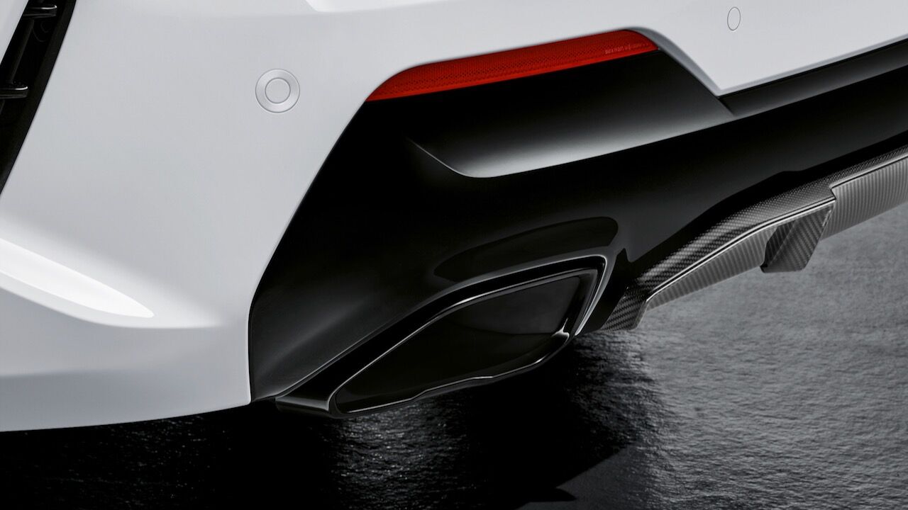 En la zaga lo que más llama la atención es el pequeño spoiler en fibra de carbono y un nuevo difusor. Integra las dos salidas del escape BMW M Performance, un silenciador deportivo de acero inoxidable que pone la guinda con un sonido mejorado. En el interior también se distinguen algunos paneles de fibra de carbono o el volante M Performance tapizado en Alcántara y cuero. Todos estos componentes se ofrecerán en la red de concesionarios de la marca y el precio se desvelará cuando el Serie 4 llegue al mercado.