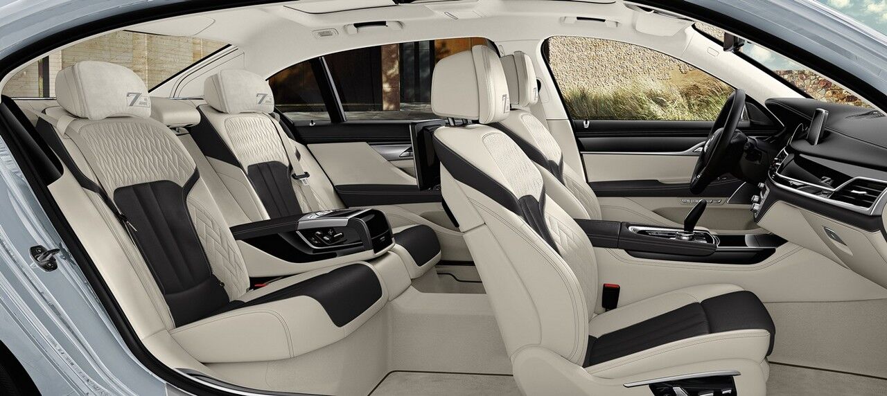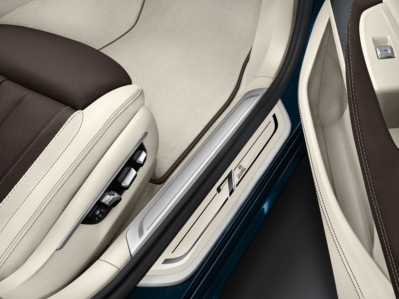Ya en el interior, al exquisito acabado habitual de la Serie 7, BMW añade asientos terminados en Cuero de la gama de elementos de personalización de BMW Individual en acabados bitono blanco/negro o blanco/cohiba con inscripciones identificativas de la versión tanto en los reposacabezas como en la zona posterior del respaldo de los asientos delanteros, a los pies de los cuales y del resto de las plazas del vehículo también se encuentran unas alfombrillas exclusivas para esta Edición especial.