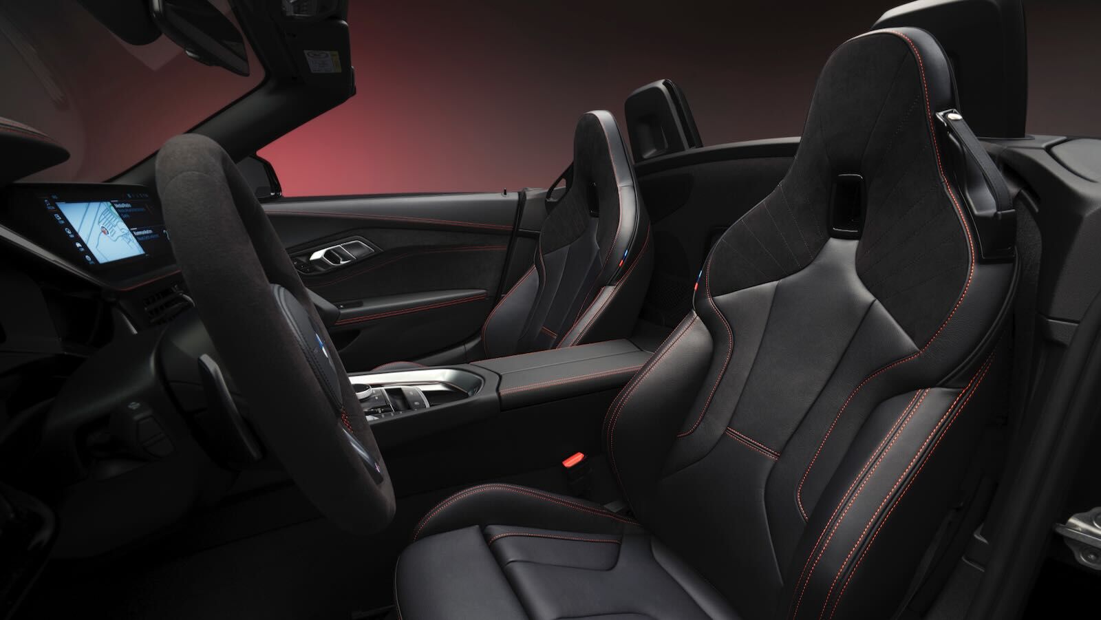 Al abrir la puerta, el habitáculo confirma que este no es un Z4 cualquiera. Un hilo rojo de contraste literalmente une todos los elementos clave del interior. Este detalle, específico del Final Edition, recorre el salpicadero, la consola central, los panes de las puertas y los icónicos asientos M Sport tapizados en cuero Vernasca y Alcantara.