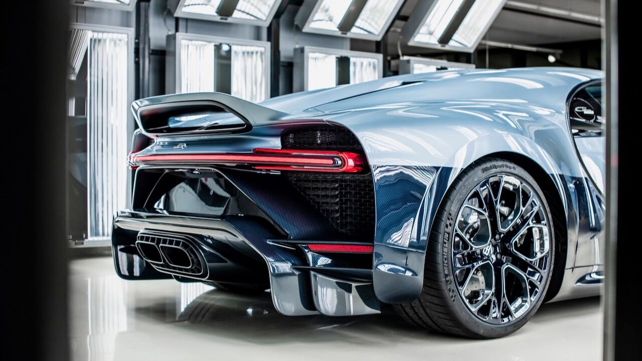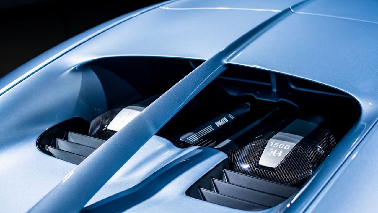 La configuración es una de las cosas más peculiares del superdeportivo. La carrocería va en el color exclusivo Argent Atlantique que no está (ni estará) presente en ningún otro Chiron. Algunas partes van en fibra de carbono expuesta del color Bleu Royal Carbon. Las llantas también son específicas y los acentos son de aluminio. Lo mismo ocurre con el interior hecho a mano, que además es el primero en llevar un acabado de cuero completo. Está presente también en salpicadero, los paneles de las puertas y la consola central y se han necesitado 2.500 metros de tiras de cuero para realizarlo.