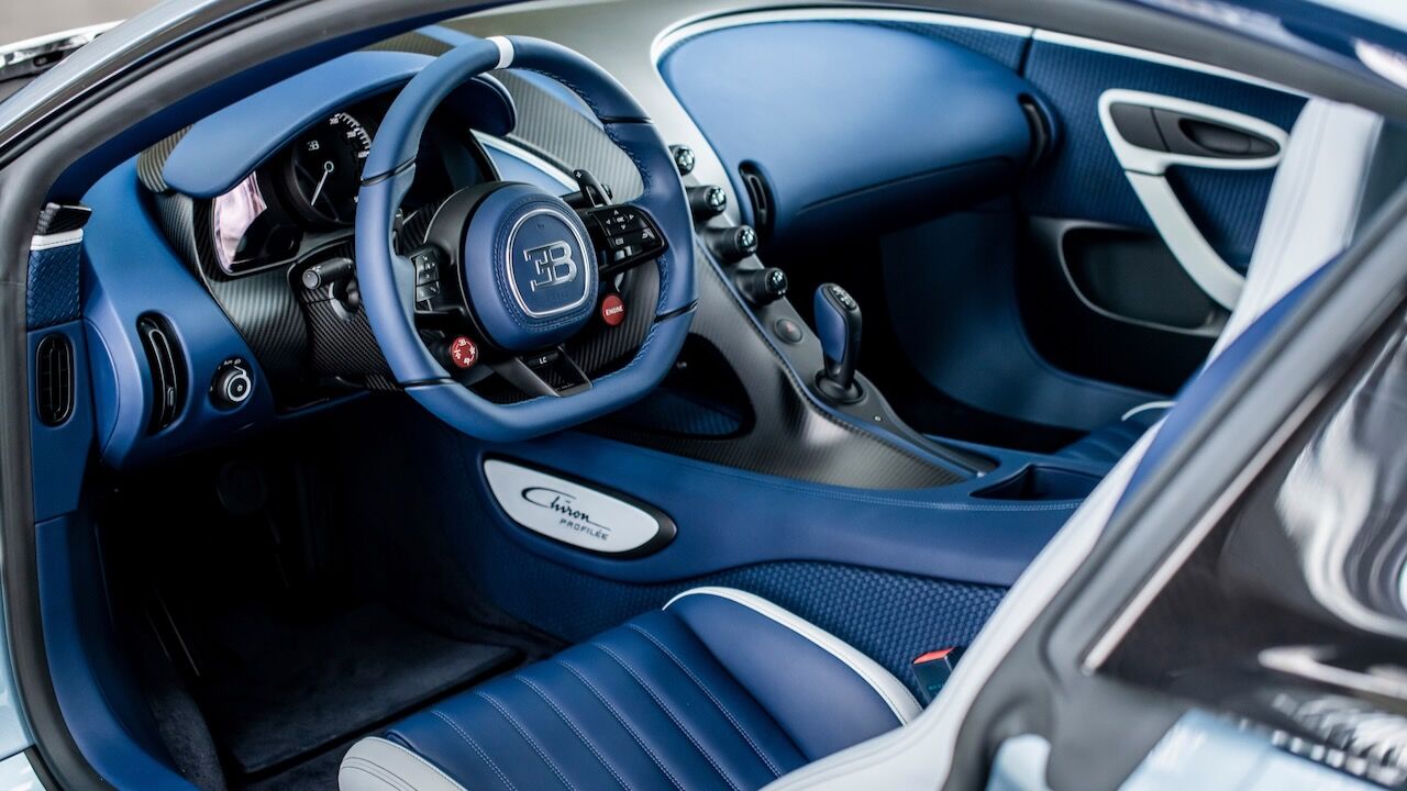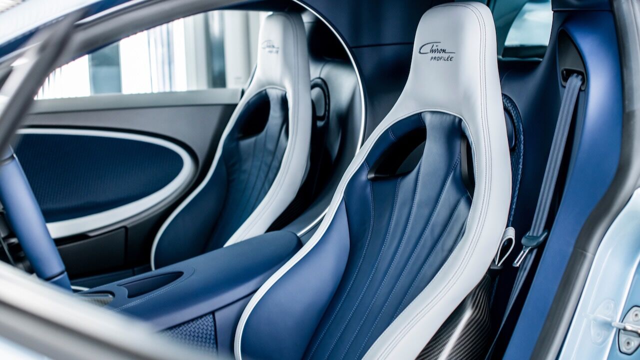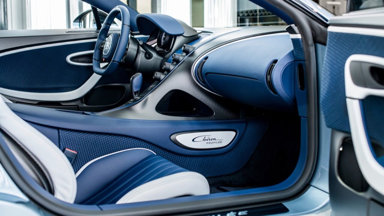 Los asientos del Bugatti Chiron Profilée son unos confort acabados en cuero Gris Rafale y Deep Blue, con el patrón acolchado «air parade», mientras que lleva el nombre de la edición especial en los paneles de las puertas. En definitiva, un modelo único que pasará a manos de un afortunado propietario que esté dispuesto a pujar por él en la subasta de RM Sotheby’s del próximo mes de febrero. Es de esperar que su precio supere por bastante los 3 millones de euros que costaba un Chiron Pur Sport antes de impuestos.