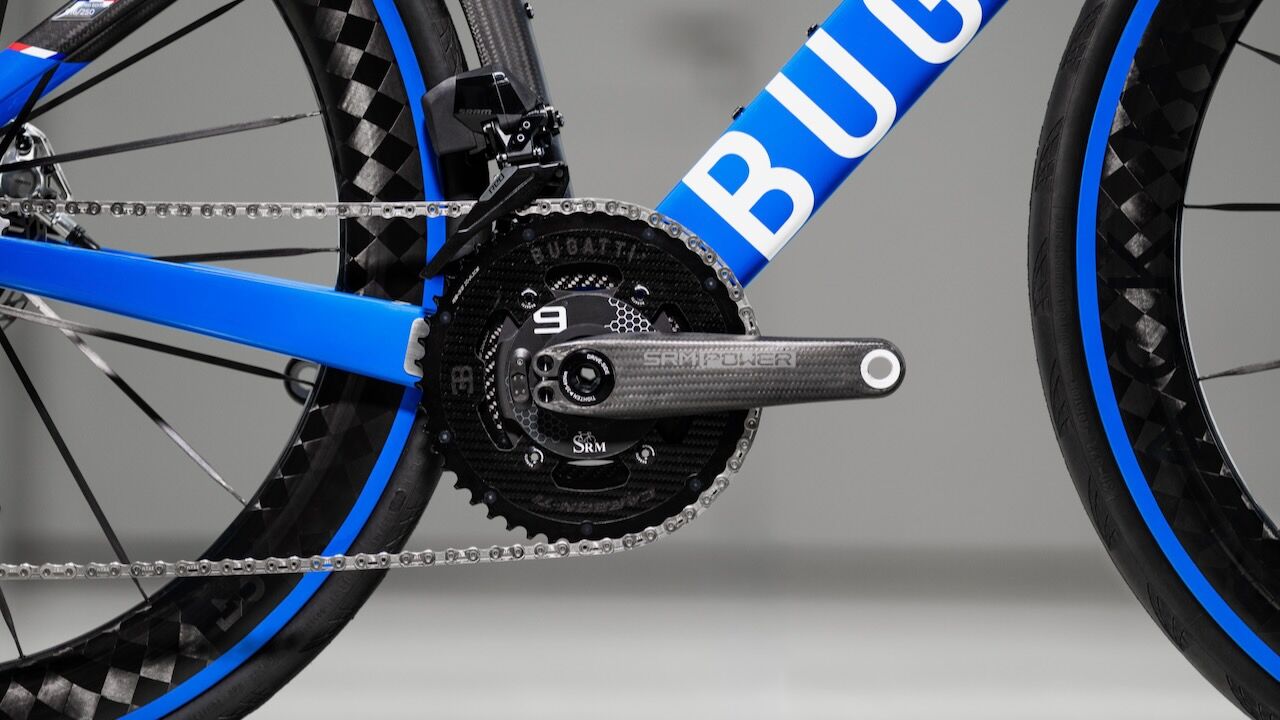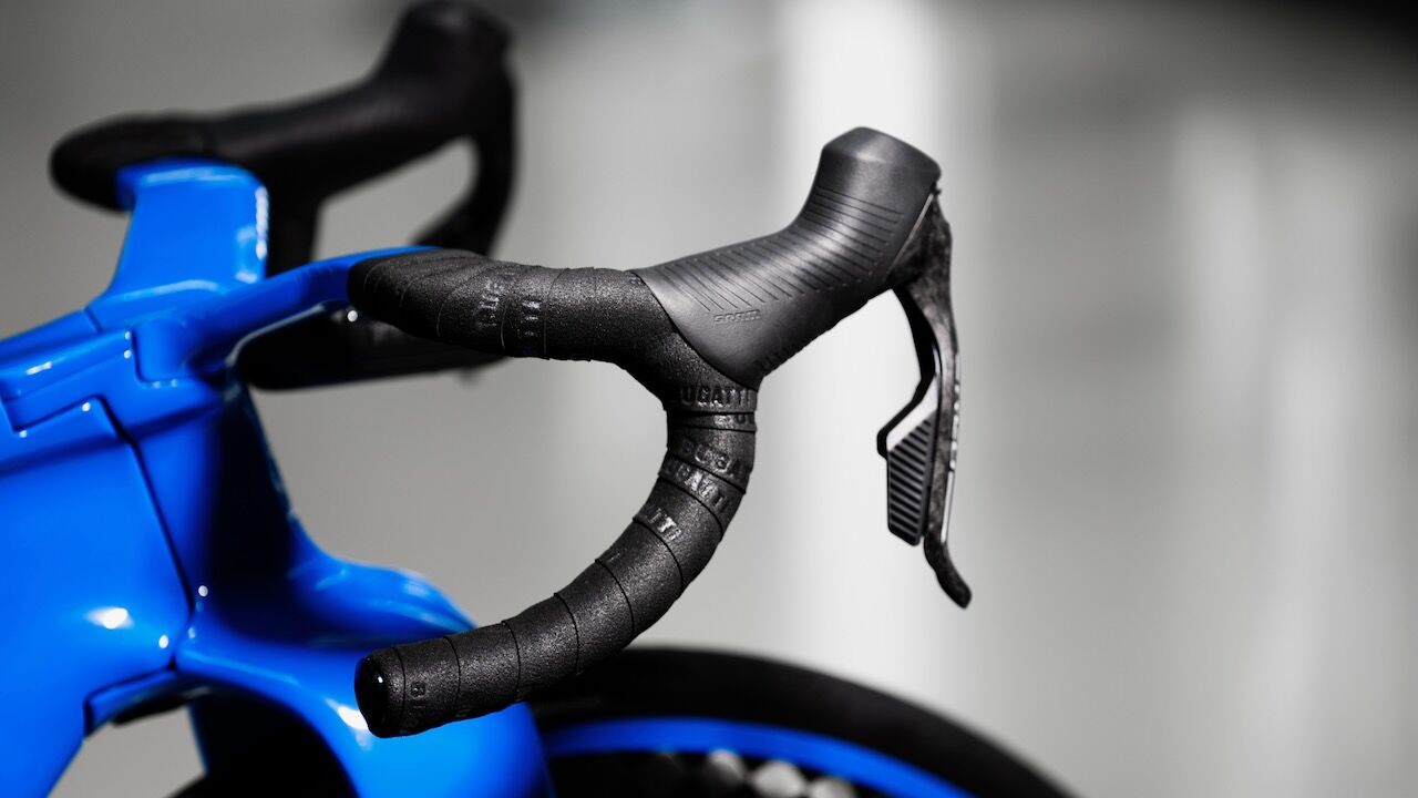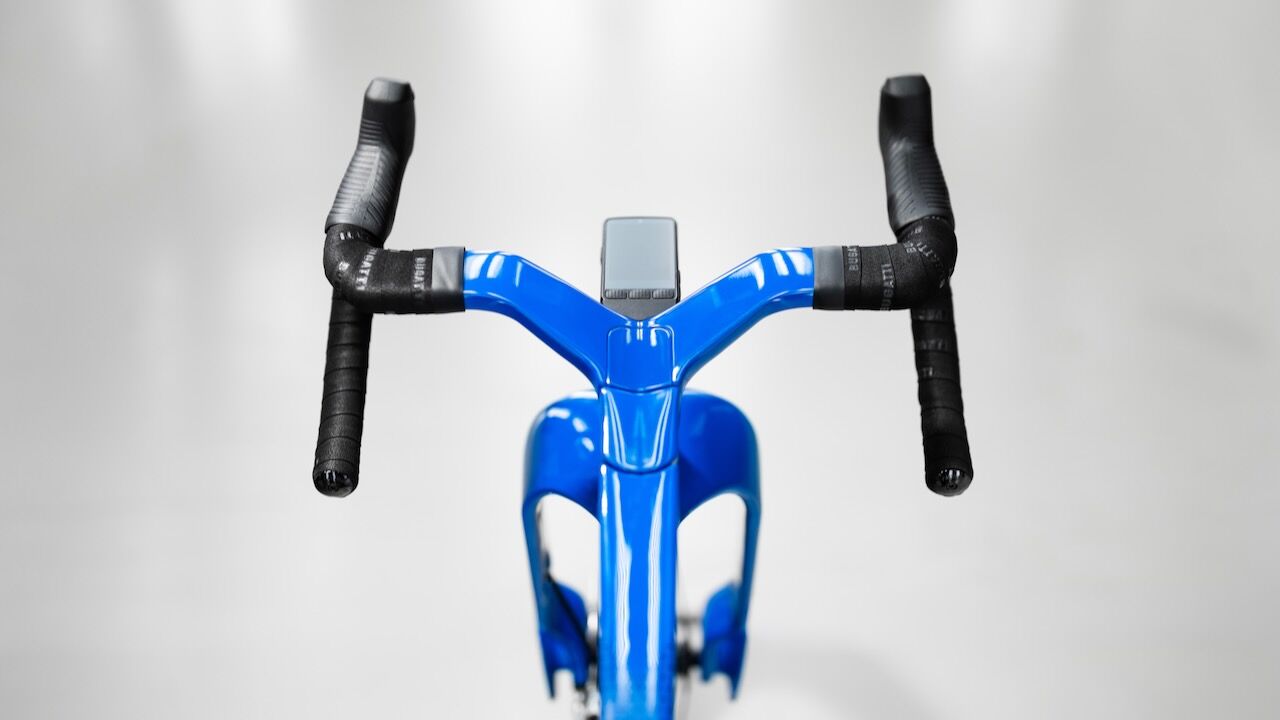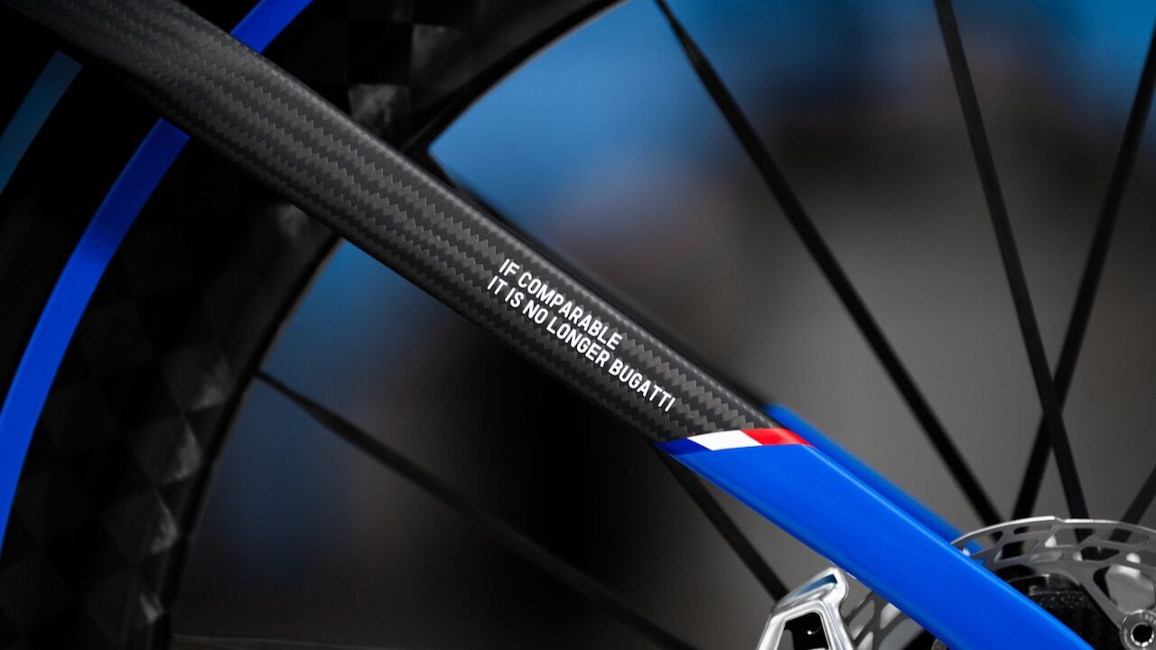 A esto se suman detalles hechos a medida como el sillín Selle Italia, los discos y platos CARBON-TI y los neumáticos Continental. Por no hablar de que, a nivel visual, la bicicleta respira la herencia de Molsheim por los cuatro costados. Se tiñe del mítico color Bugatti Blue, un tributo directo a los bólidos de carreras franceses de los años veinte y, en especial, al legendario Type 35 que dominaba los Grandes Premios de la época. El avanzado cuadro de carbono presenta un esquema gráfico dividido en dos tonos que imita las líneas de sus superdeportivos, rematado con la inscripción de la marca en color blanco.