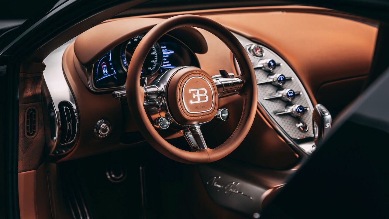 Esta joya es la segunda obra del exclusivo «Programme Solitaire«, tras el Bugatti Brouillard que fue presentado año pasado. Por fuera puede recordar poderosamente al Veyron de 2005 con esa característica carrocería «reclinada» hacia atrás que se alejaba de las cuñas agresivas de los Lamborghini de la época. Sin embargo, sus entrañas son pura vanguardia. El motivo es que su base técnica es el Chiron Super Sport, por lo que monta el W16 de cuatro turbos y 8.0 litros de capacidad, con ese nivel de potencia que llegó hasta los 1.600 CV y 1.600 Nm de par.