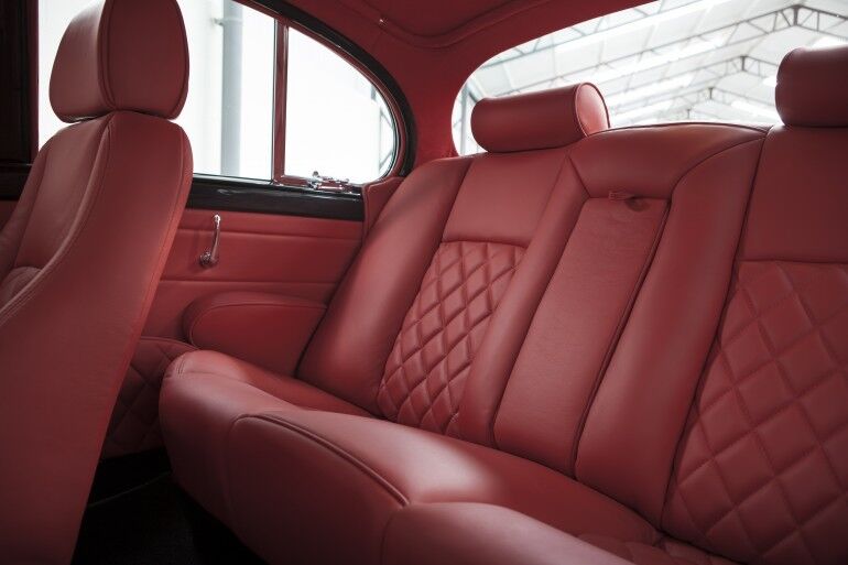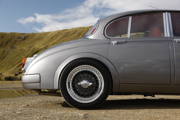 En cuanto al motor y equipamiento sí que podemos ver más cambios, empezando por el motor, ya que hablamos de un 4.3 litros con una caja de cambios manual de 5 velocidades. La suspensión también ha sido cambiada, al igual que frenos y otros elementos que hacen al Jaguar un coche más actual en cuanto a seguridad se refiere. En el interior el estilo vintage sigue presente gracias a la presencia de la madera y un volante muy clásico. Toda esta apariencia interior clásica choca con la pantalla táctil de 6.3 pulgadas que controla la radio.