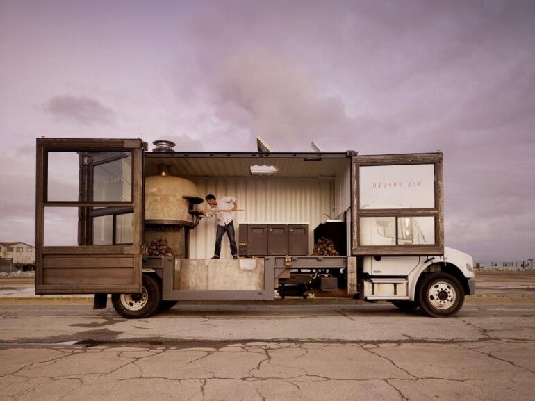 Esta pizzería móvil, Del Popolo, sirve pizzas al estilo rústico napolitano, con ingredientes originarios de los productores locales e independientes. La trasformación de este ste contenedor transatlántico de 6,1 metros de longitd le ha costado al dueño, Jon Darsky, cerca de 180.000 dólares (unos 150.000 euros).