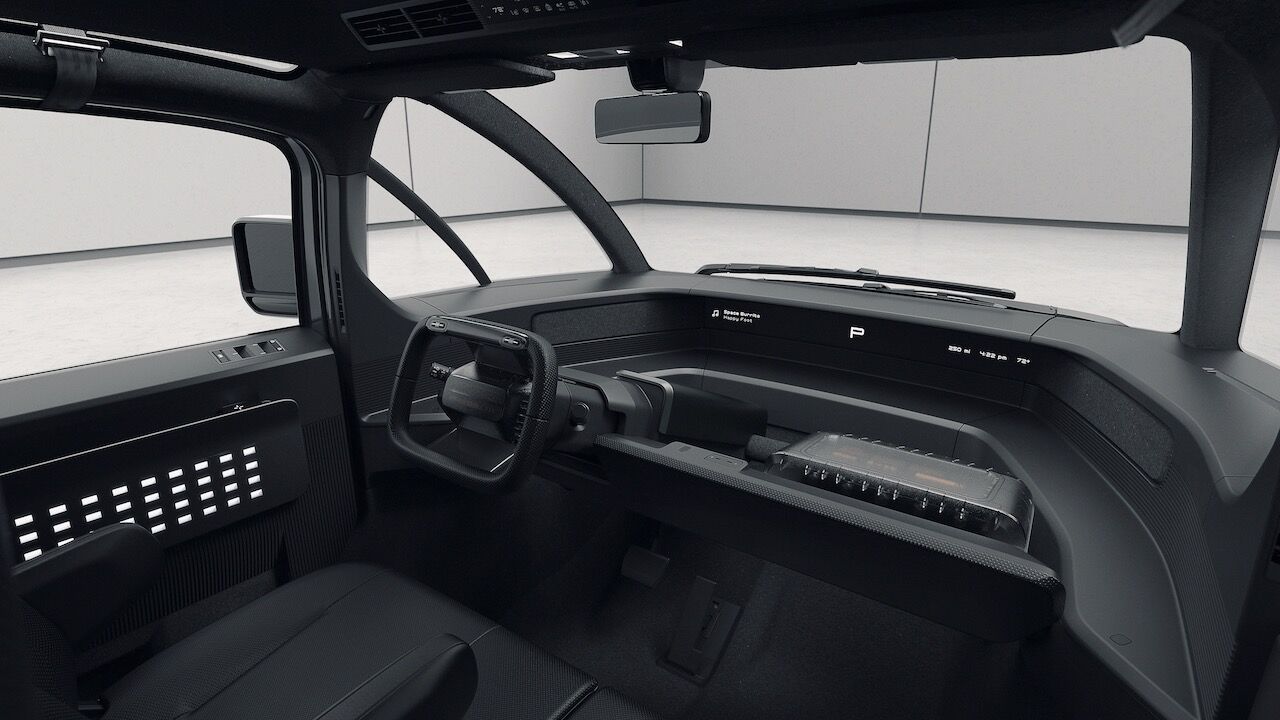 Pero no se queda solamente con esa cama extensible (que incluye separadores de espacio) que lo hace más capaz, pues el modelo de Canoo también suma otras funcionalidades interesantes. En la parte frontal, desde la parrilla, se accede a un espacio de carga para poder llevar pequeños objetos, que también se convierte en una mesa de trabajo plegable con enchufes incluidos. Y hablando de mesas, en los laterales hay otras dos abatibles en la parte baja que se pueden aprovechar.