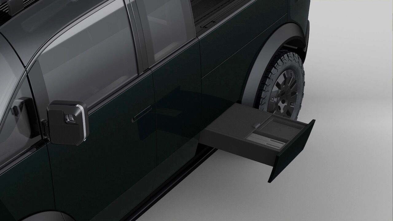 En el costado del vehículo hay un escalón oculto para facilitar el acceso y justo debajo hay un hueco en el que van un botiquín, una neverita y un espacio con cierre para el ordenador y otros objetos. No falta la iluminación perimetral para ver la plataforma de carga por la noche o portaequipajes de techo opcionales en varios tamaños. También podrá convertirse en camper gracias a que se le pueden adaptar varias cubiertas sobre la parte trasera.