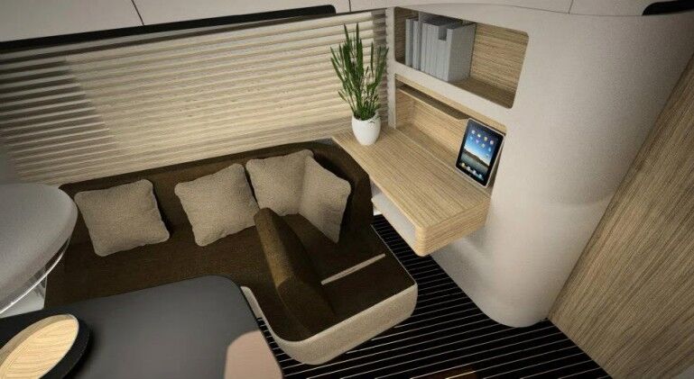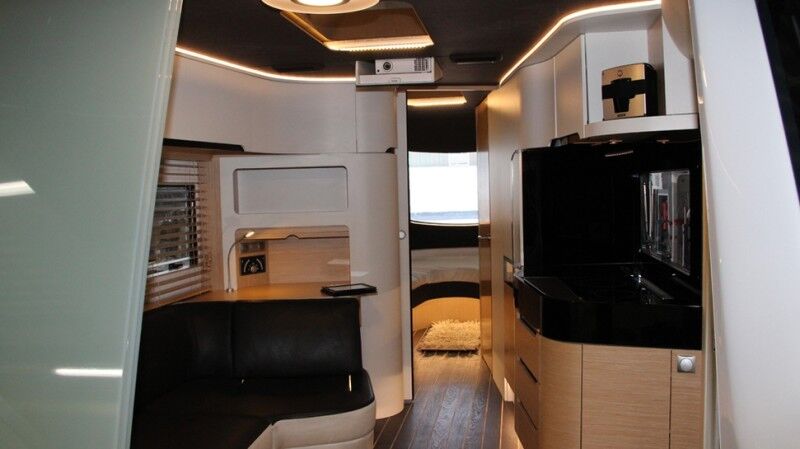 Pero, ¿qué es lo que ofrece por dentro la Caravisio? Según podemos ver en las imágenes, en su interior cuenta con una estética de lujo, compuesta de dos camas individuales dispuestas en forma de V y que se pueden unir formando una única cama de grandes dimensiones.