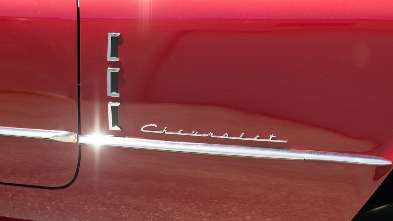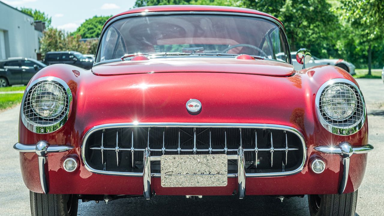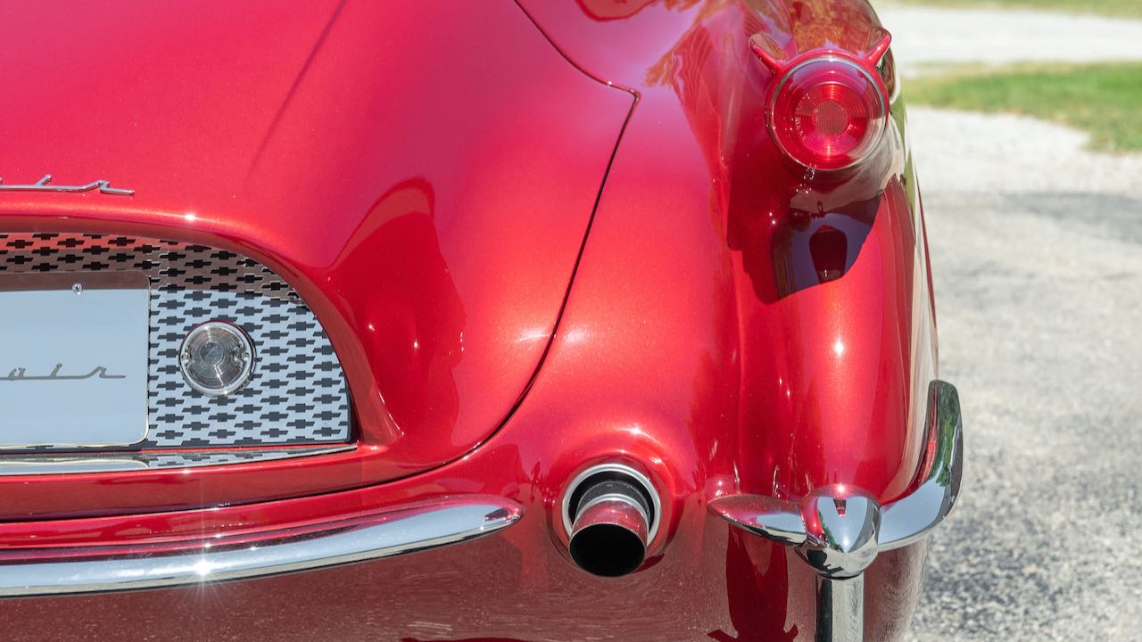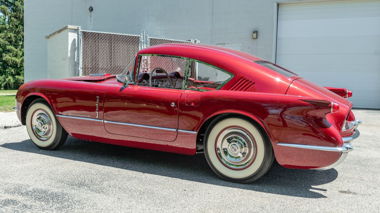 Tomando como base un Corvette original de 1954. todos los paneles de la carrocería fueron hechos a mano en fibra de vidrio, al igual que el prototipo original. Los únicos dos paneles que quedan del automóvil original son los guardabarros delanteros. En rojo con el interior blanco, como el modelo primigenio.