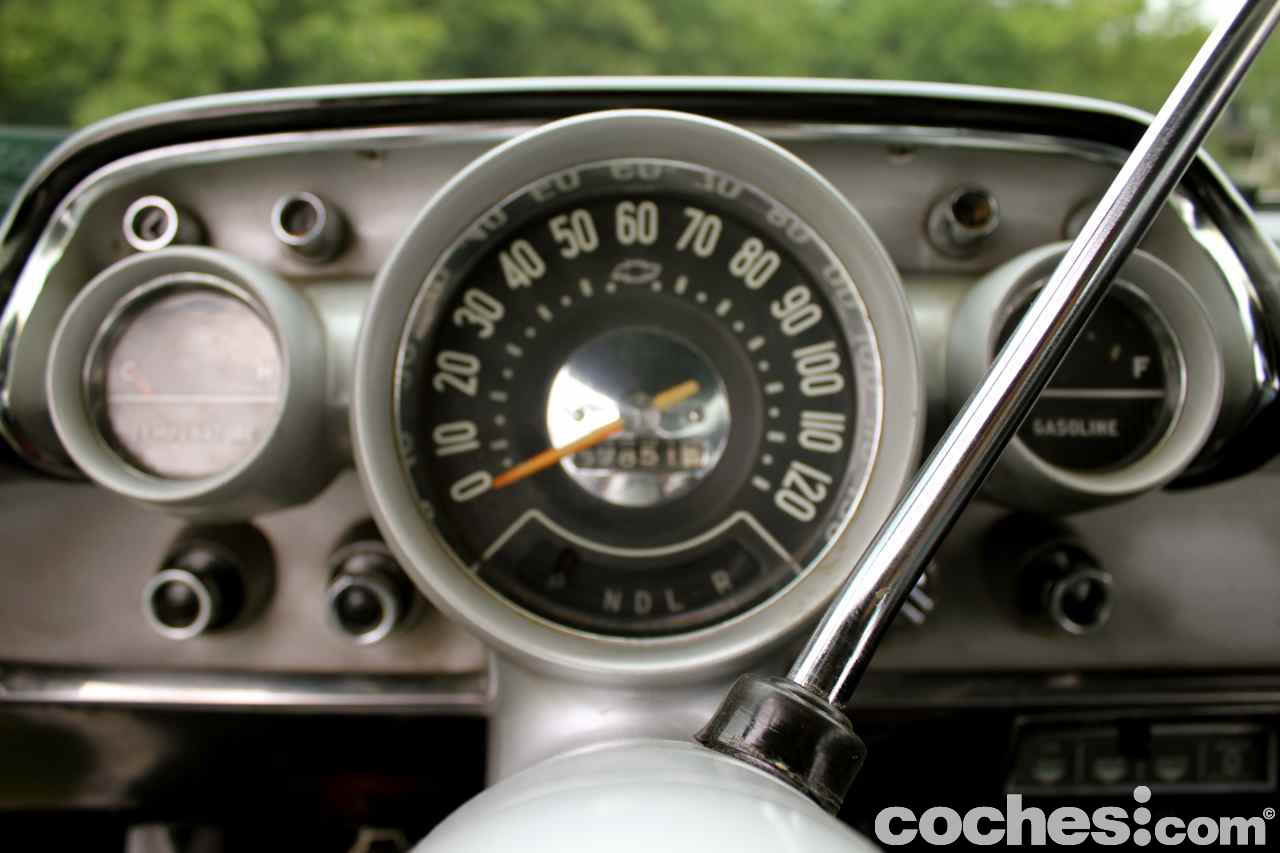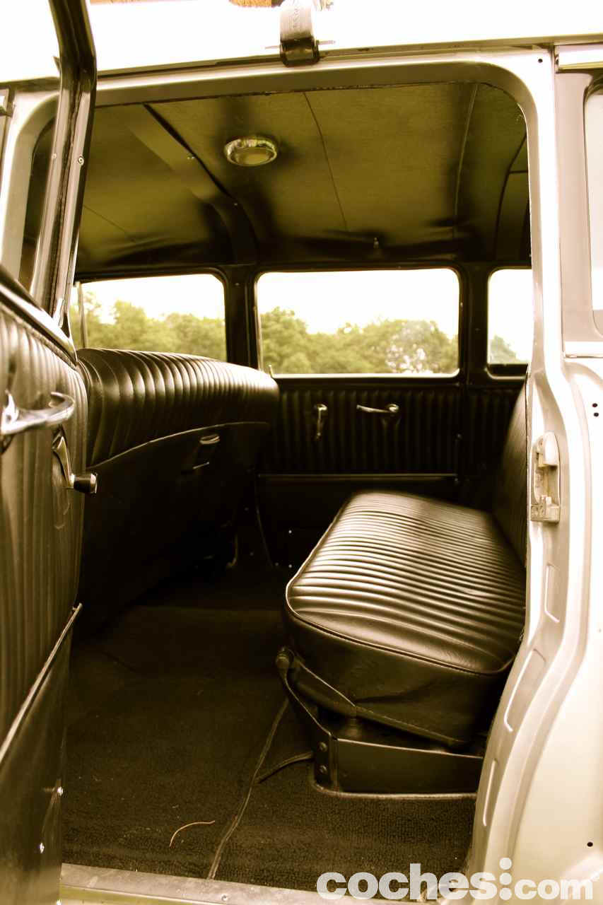Los acabados, con puertas rematadas en cuero en su interior como los asientos (no conocían entonces los plásticos duros). Por desgracia, no hubo oportunidad de conducir el Nomad como sí pudimos hacer con el Camaro 350 V8 hace unos meses. Pero nos podemos imaginar este coche cargado hasta el techo con maletas, niños hiperactivos en el asiento trasero y mamá y papá sentados delante viajando hacia la playa.